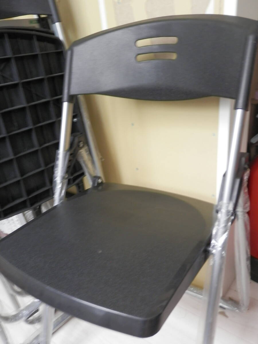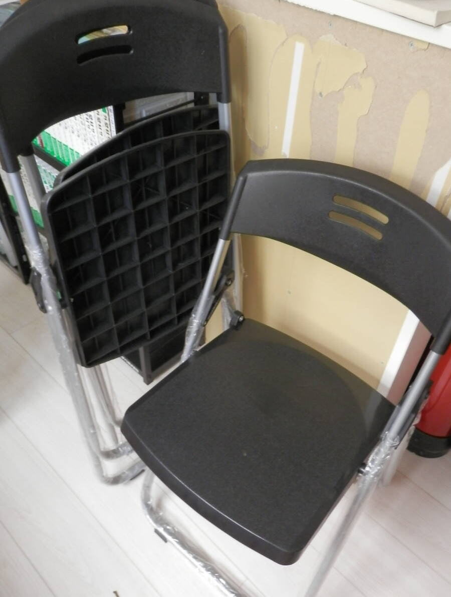 未使用2脚セット  折り畳み/折畳ミーティングチェア/パイプ椅子 黒 金属フレーム 座面プラスチック*1F0725