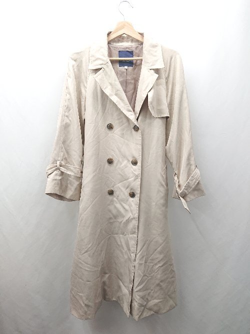 ◇ ⊇ iDEA ALLiY シンプル系 長袖 ナイロンロングジャケット サイズL ベージュ系 レディース E