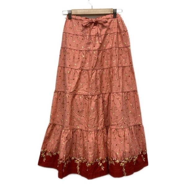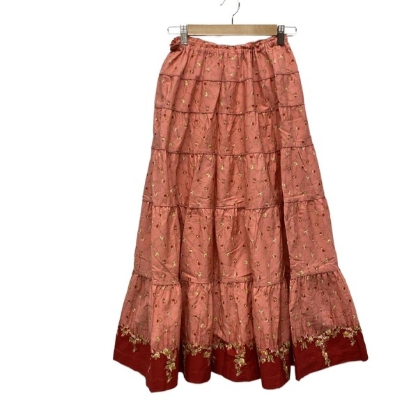 カネコイサオ KANEKO ISAO ロングスカート - ピンク×レッド×マルチ レディース マキシ丈/花柄 美品 ボトムス