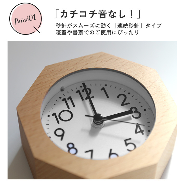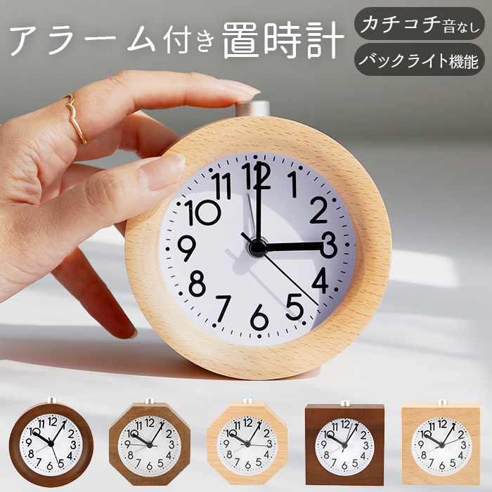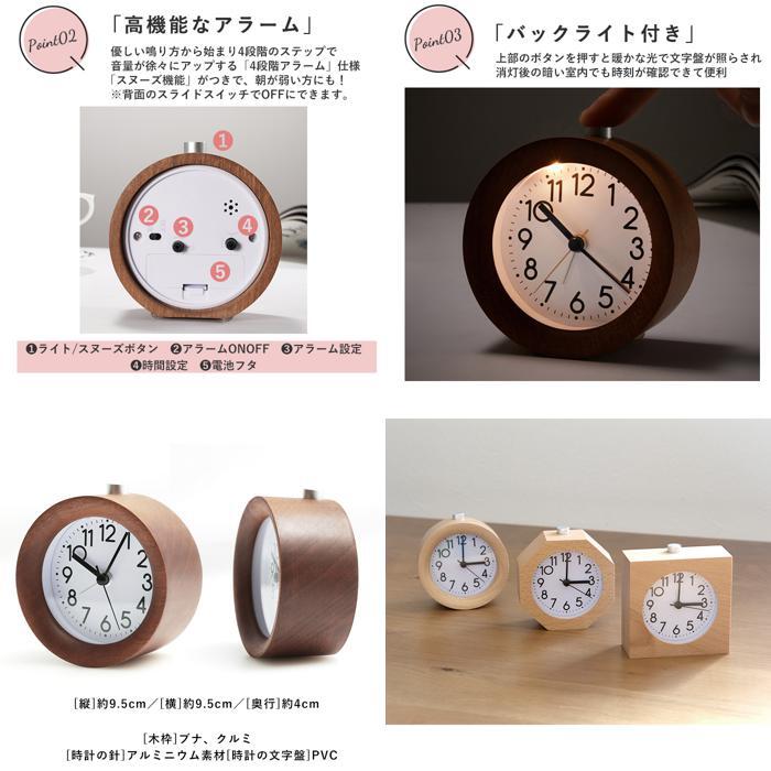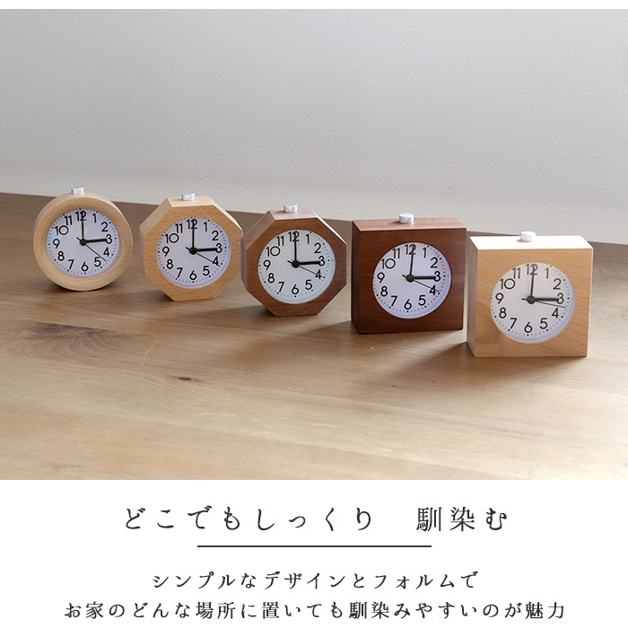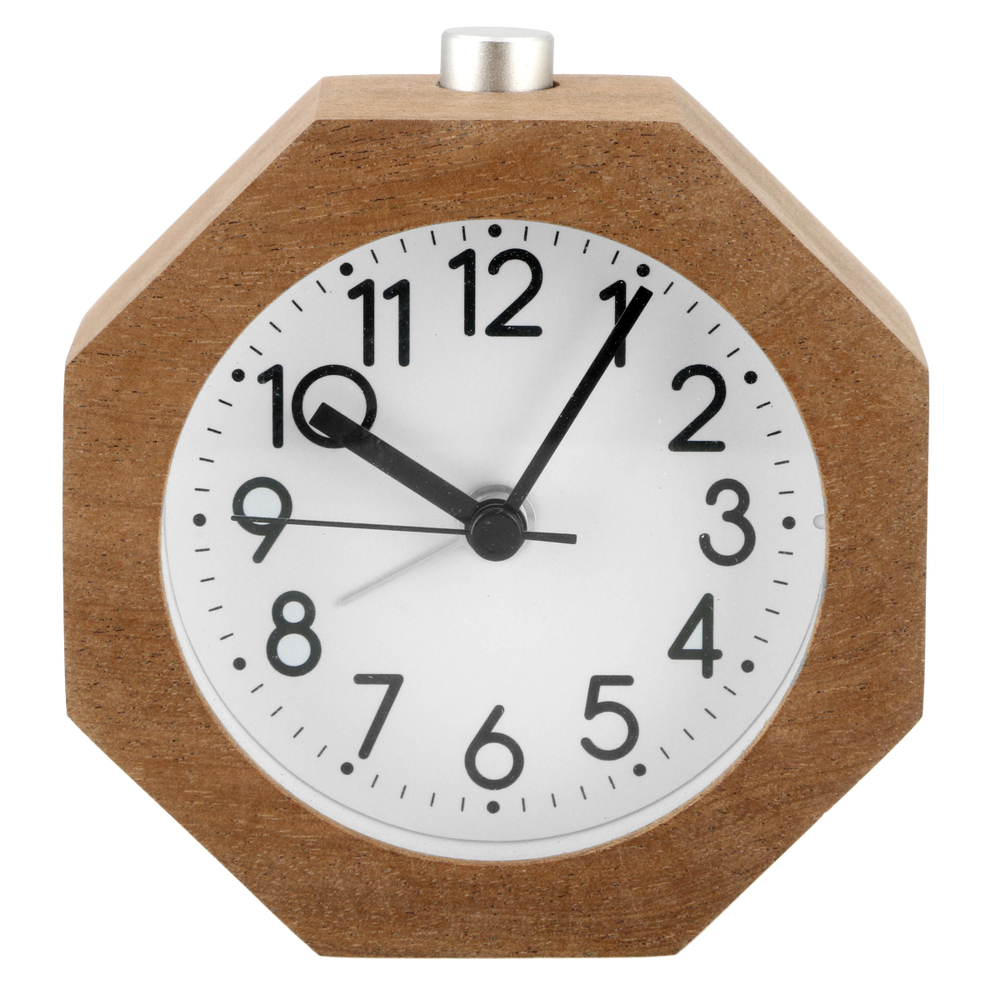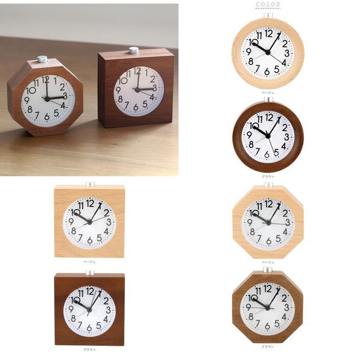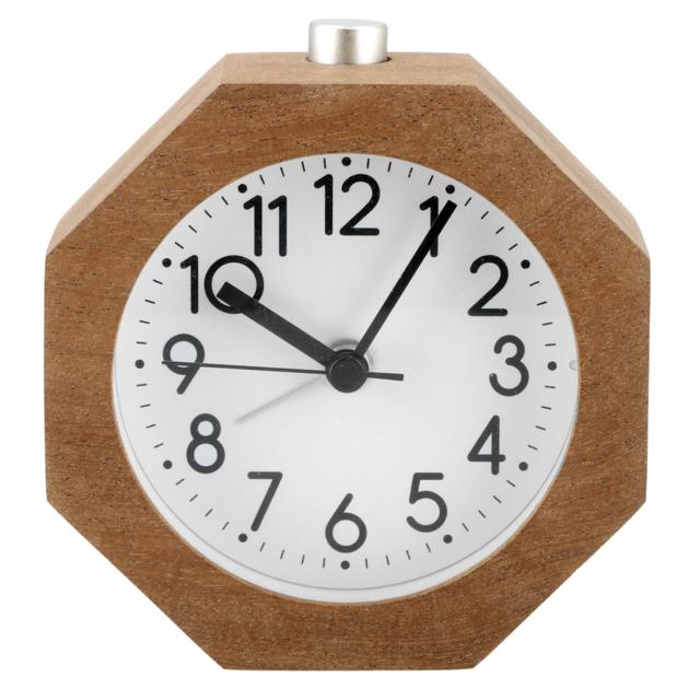 ☆ ブラウン ☆ 八角型 置き時計 おしゃれ 通販 目覚まし時計 アナログ 時計 子供 アラームクロック 木製 木目調 寝室 ナチュラル 卓上 ス