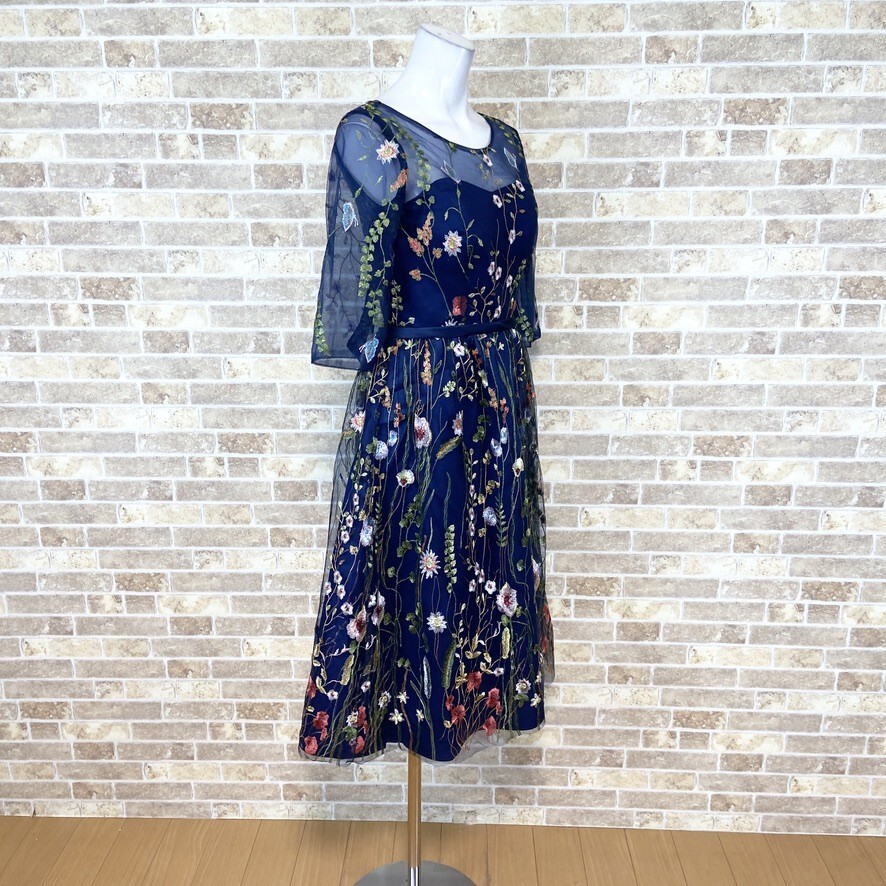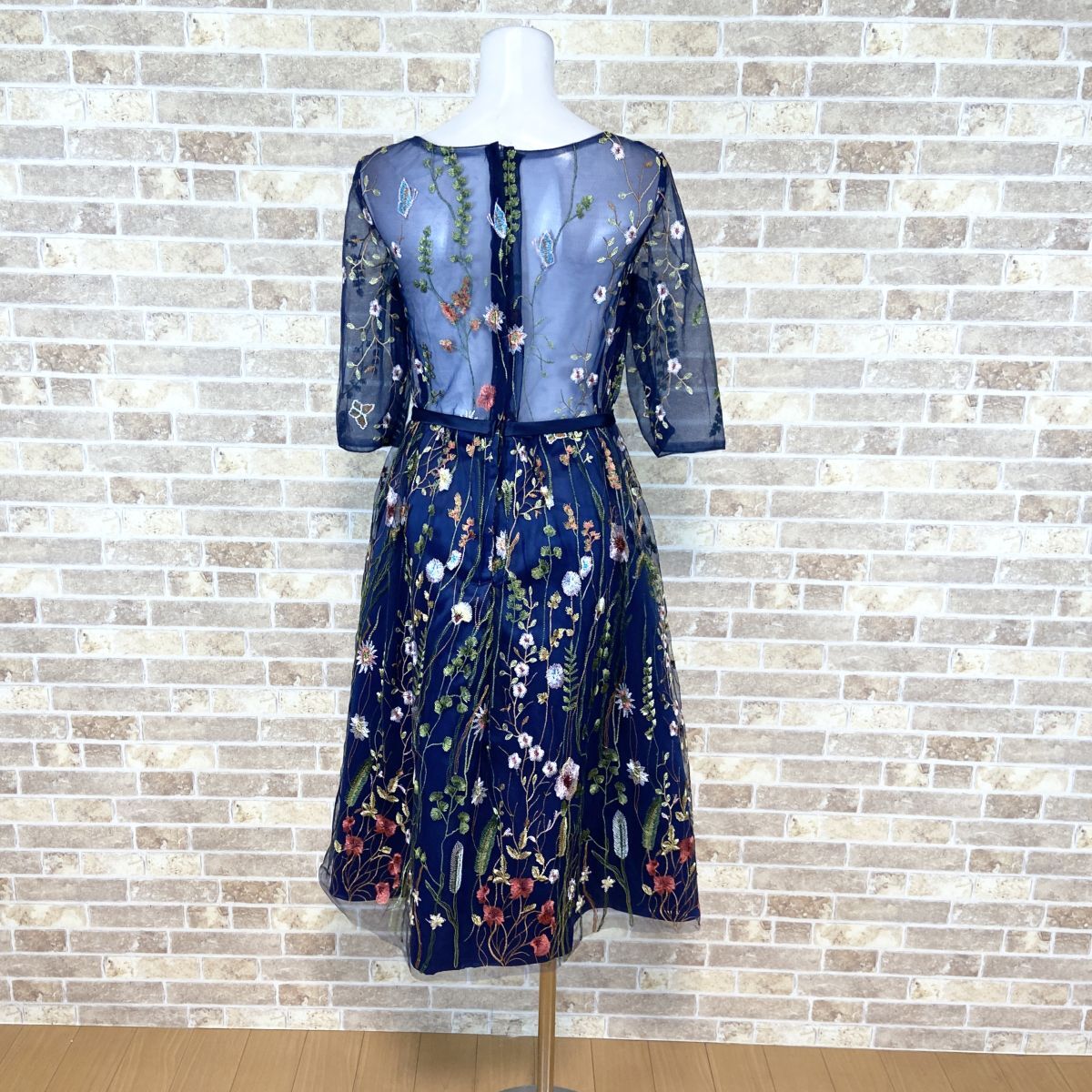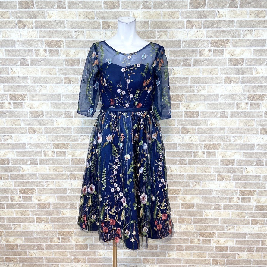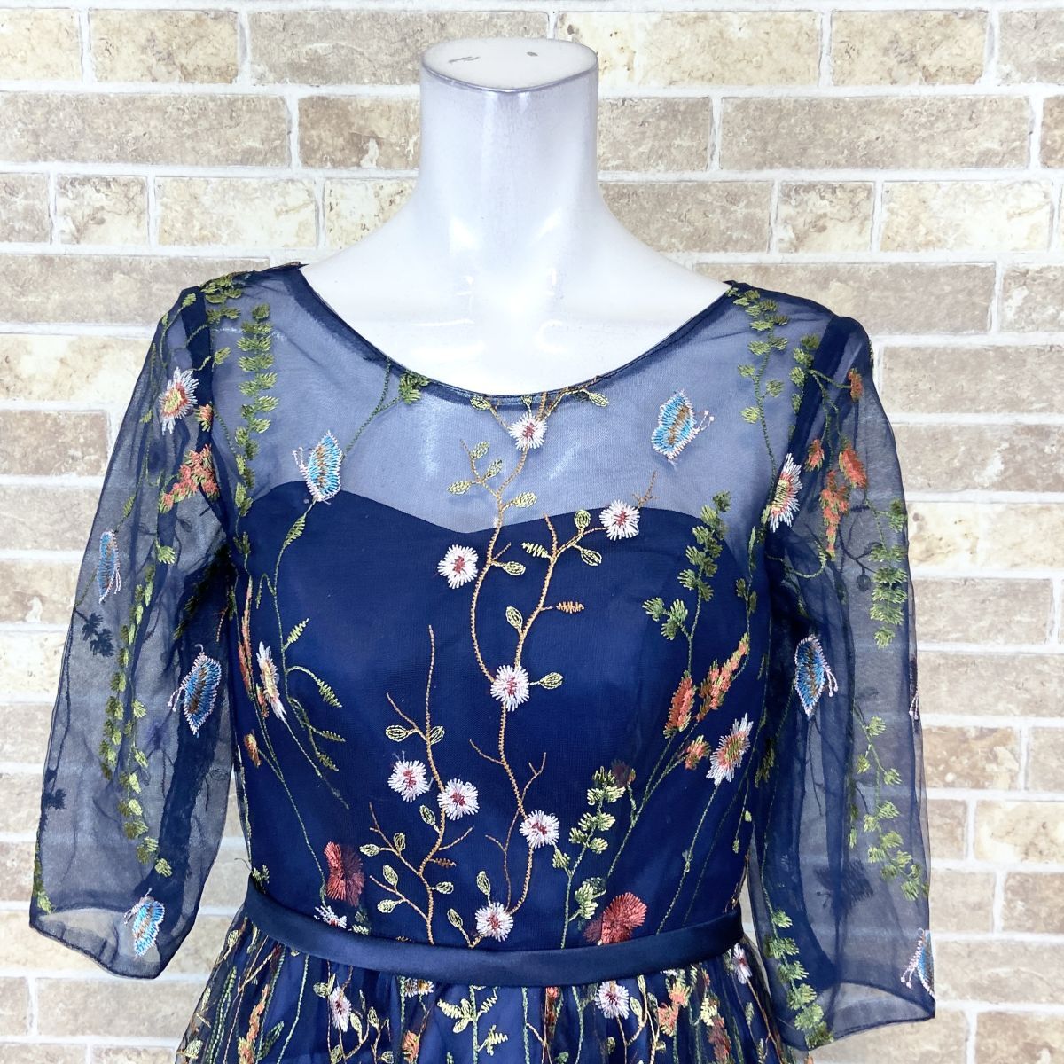 1円 ドレス ロングワンピース ネイビー系柄 カラードレス キャバドレ 発表会 イベント 中古13401
