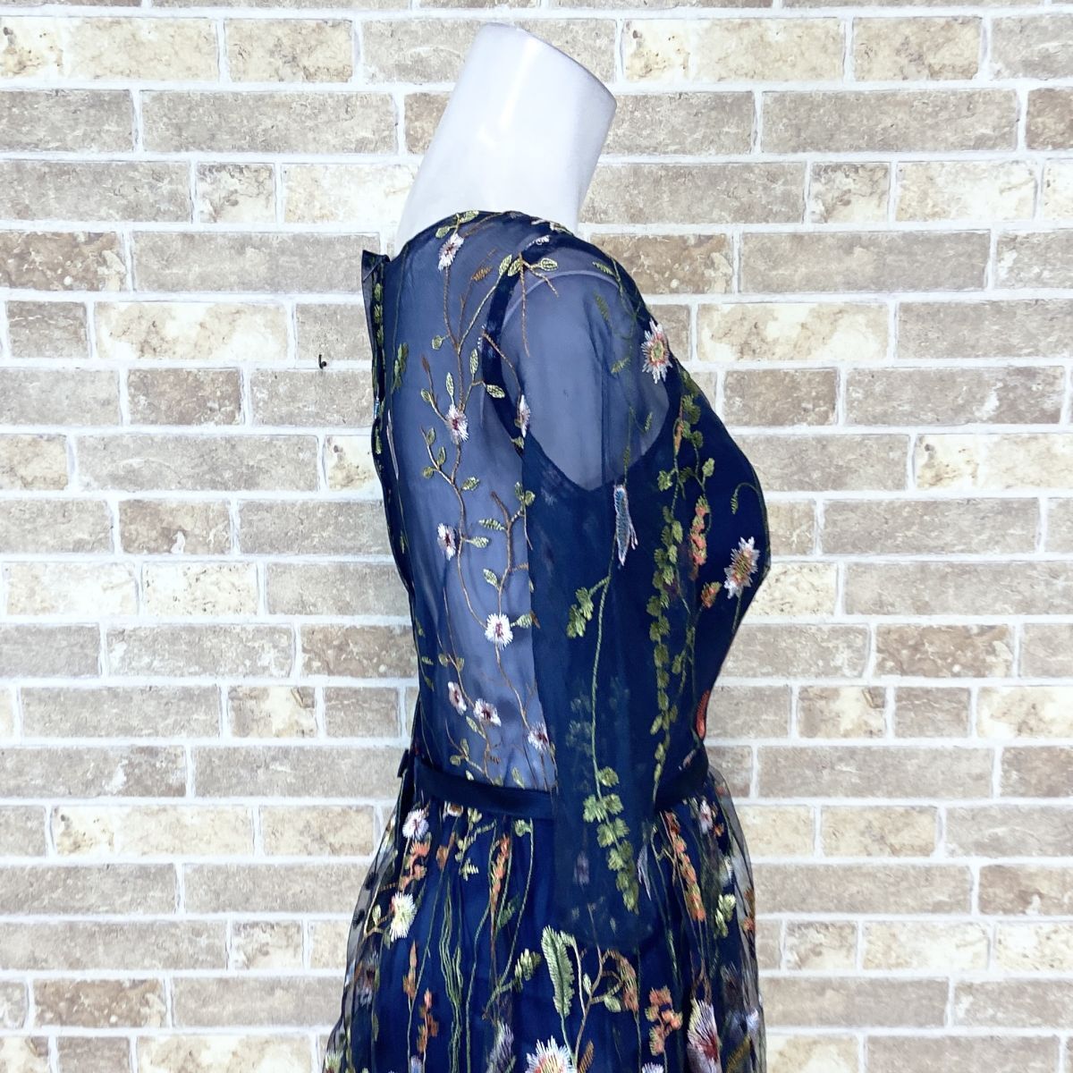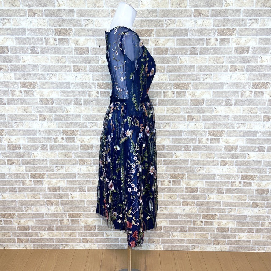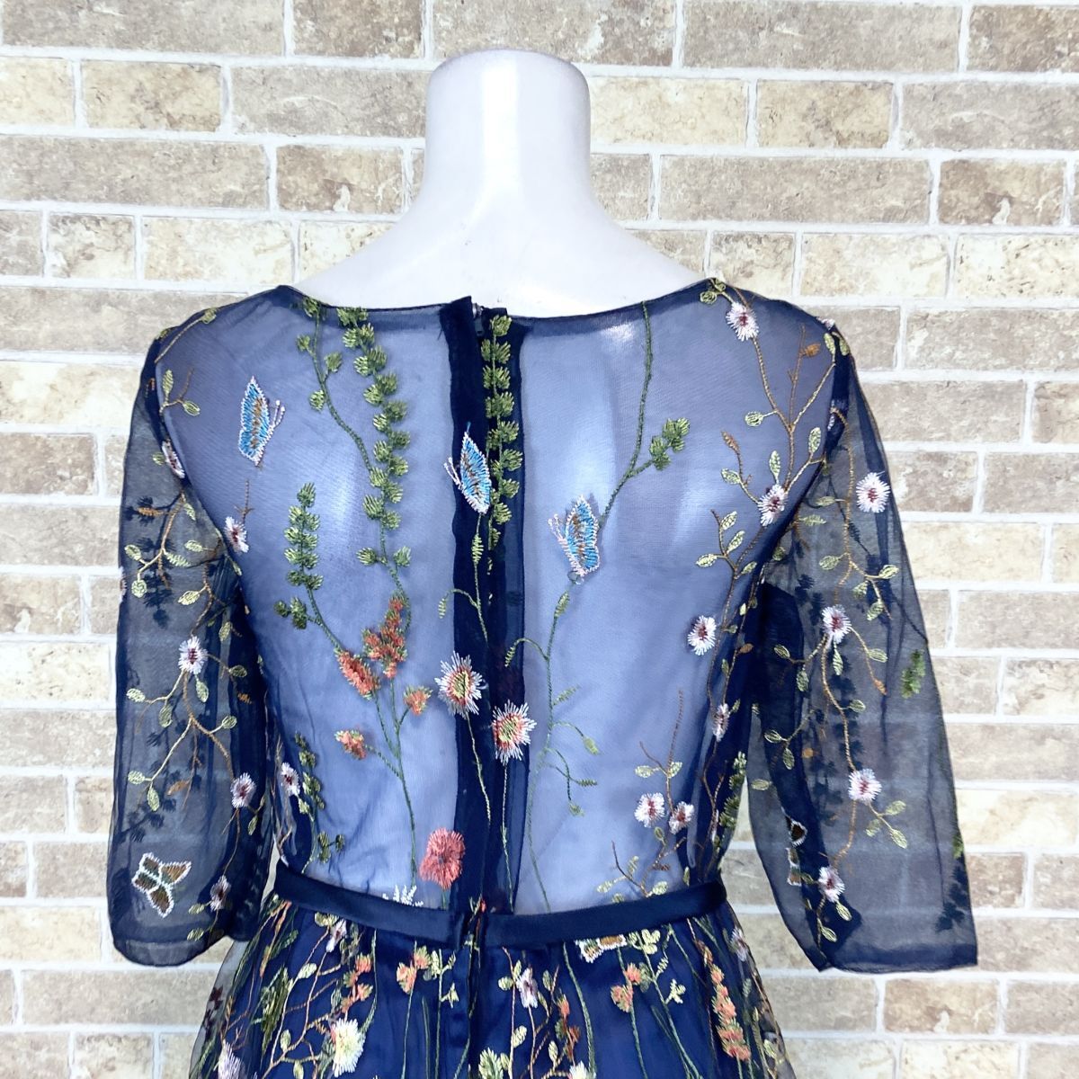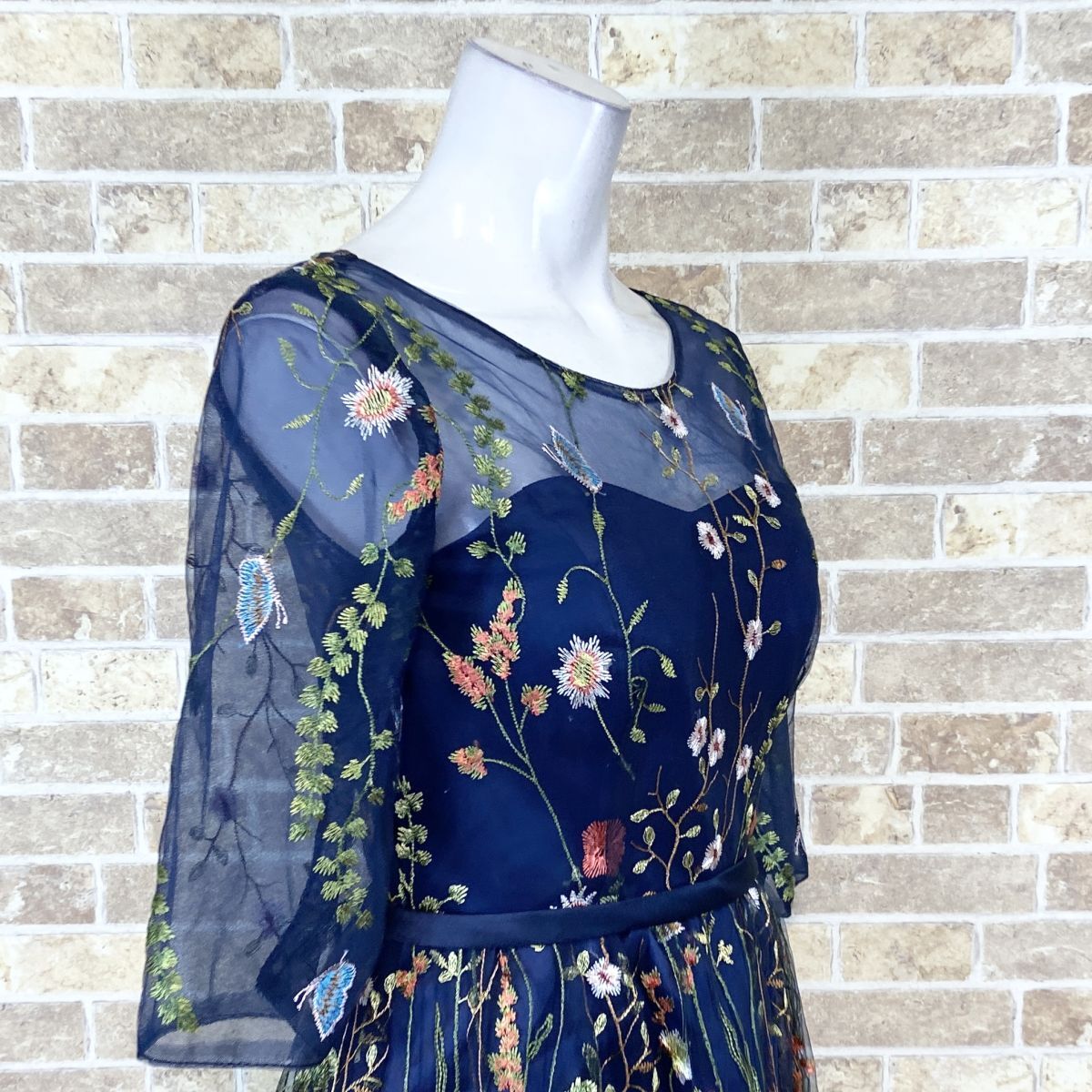 1円 ドレス ロングワンピース ネイビー系柄 カラードレス キャバドレ 発表会 イベント 中古13401