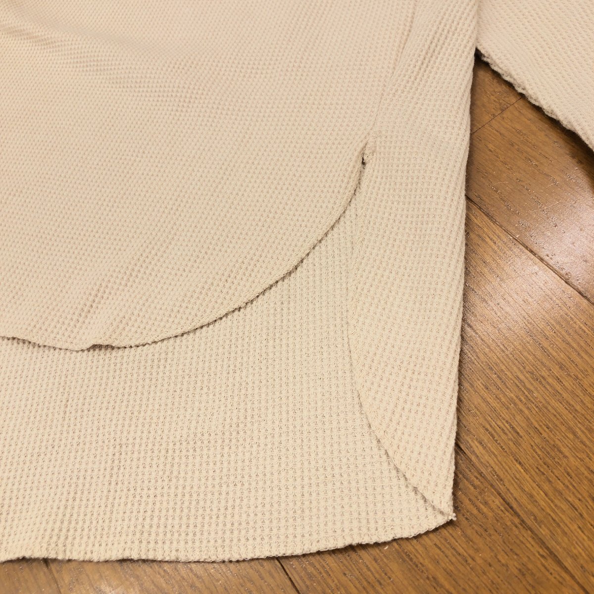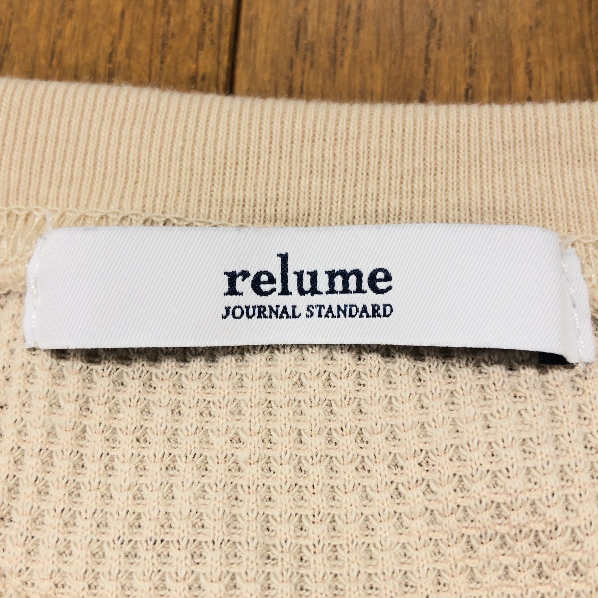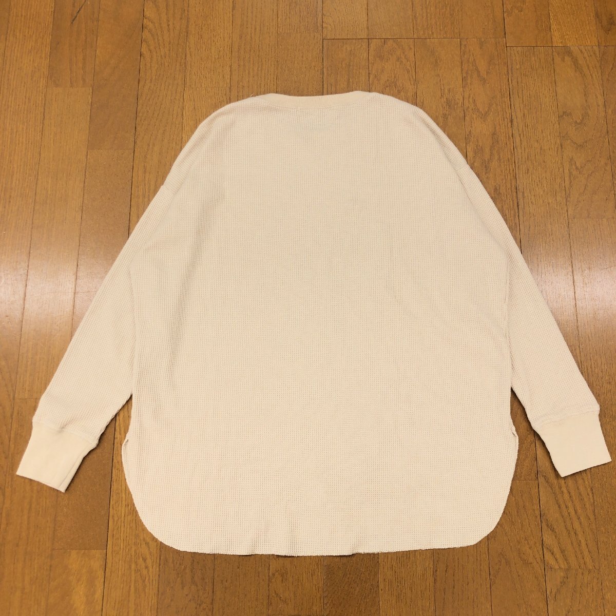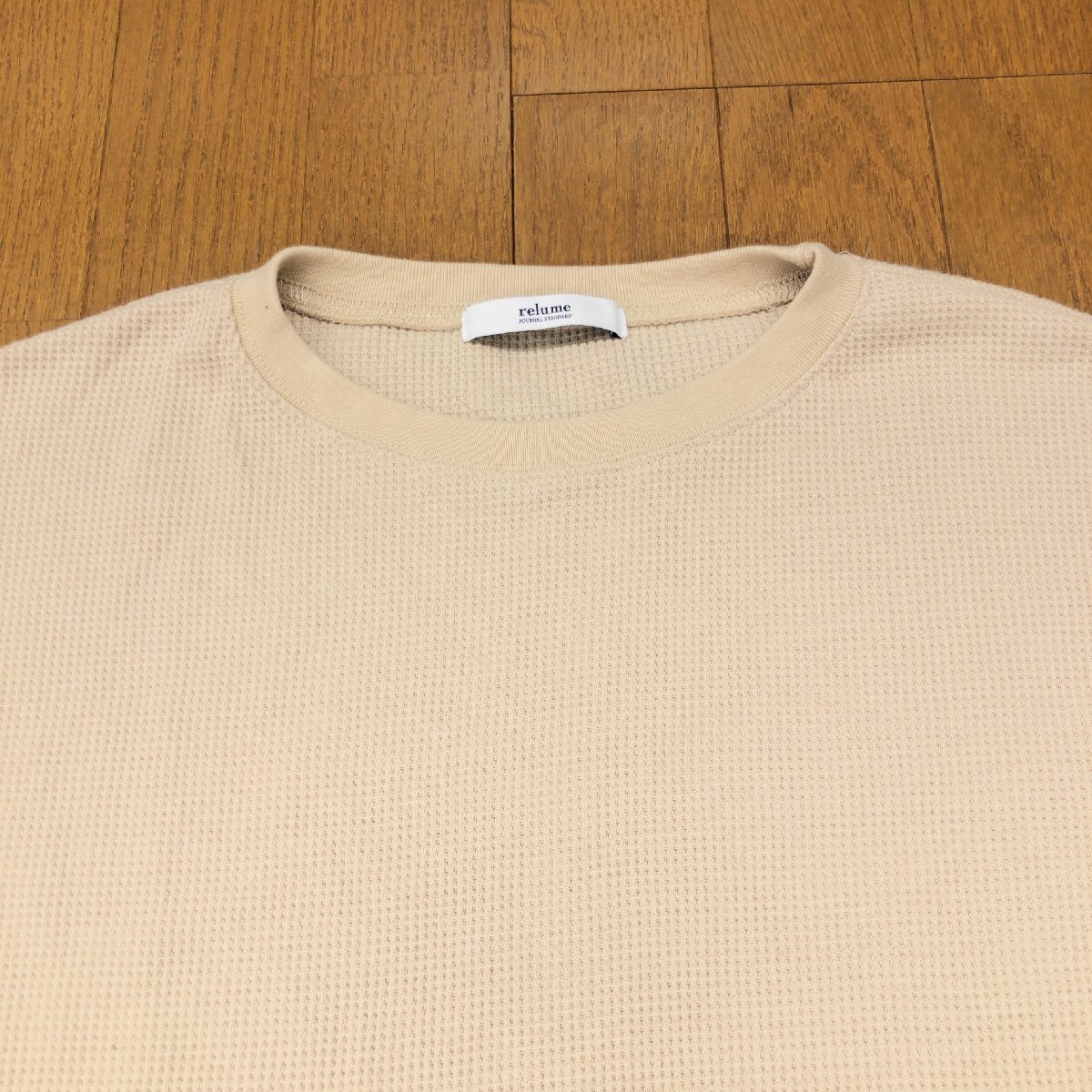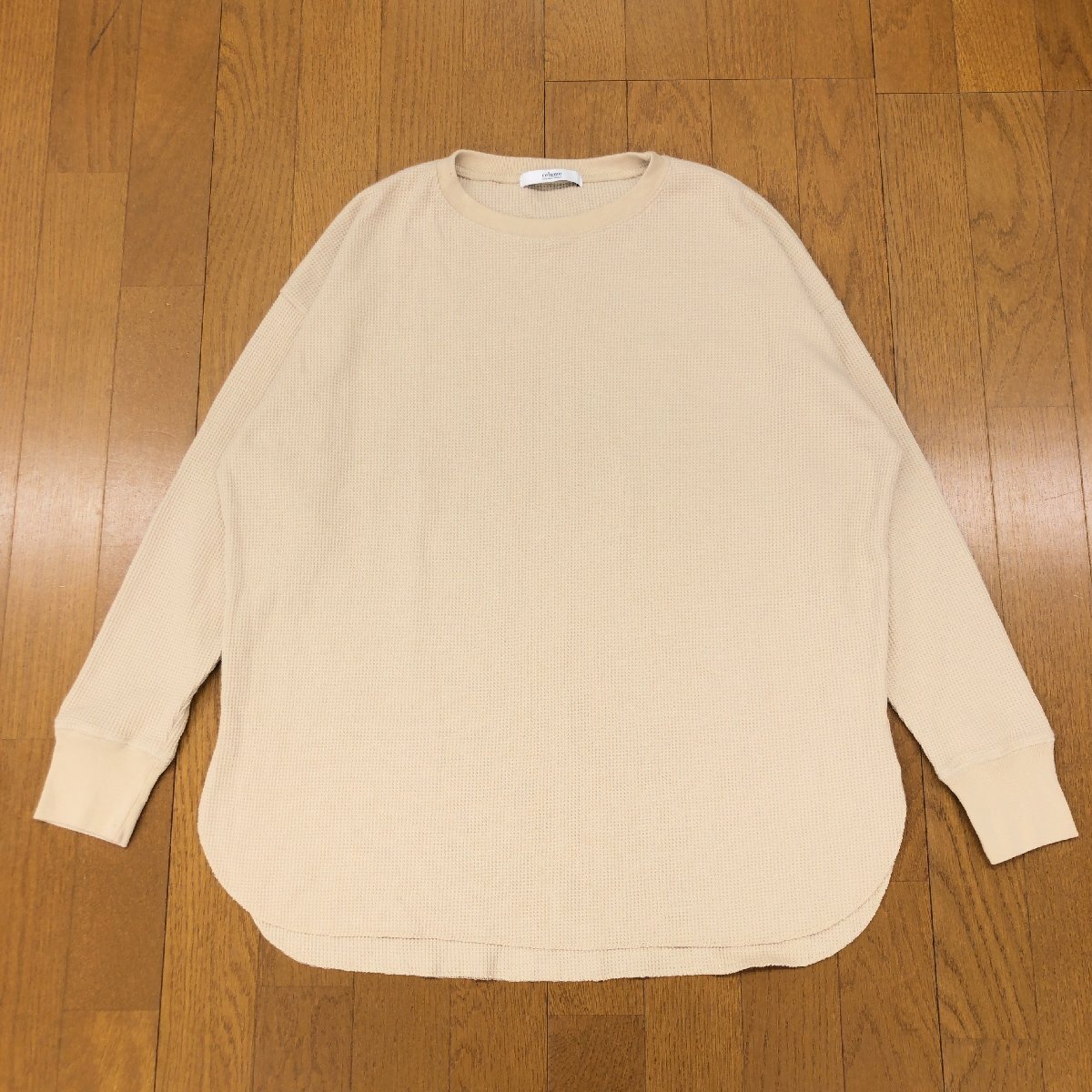 美品 relume JOURNAL STANDARD ジャーナルスタンダード TC ワッフル オーバーサイズ カットソー F ベージュ 長袖 ロンT Tシャツ スリット