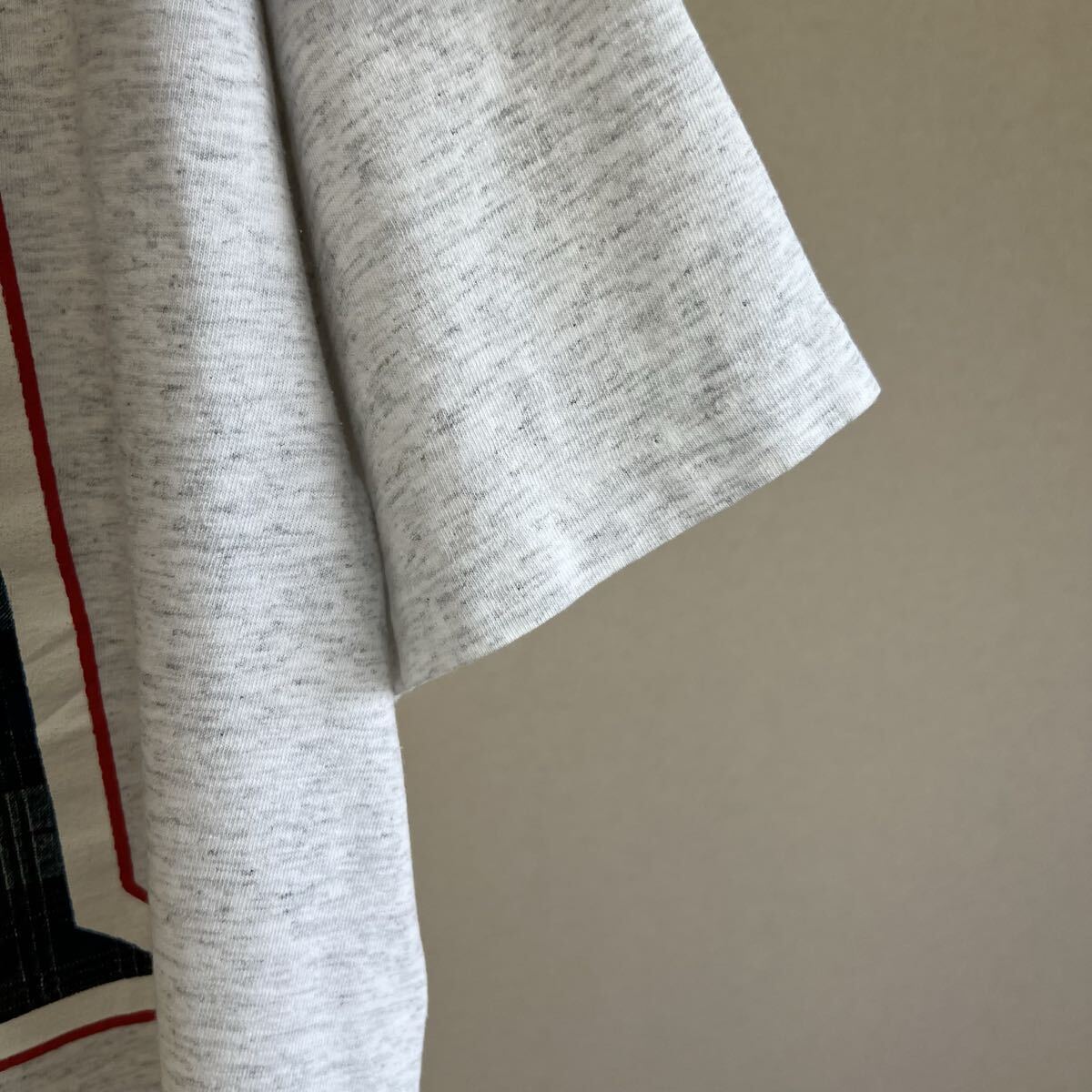 1990年代頃のヴィンテージ、ライトグレーのアメリカ製プリントTシャツです。