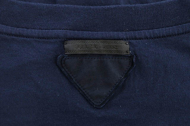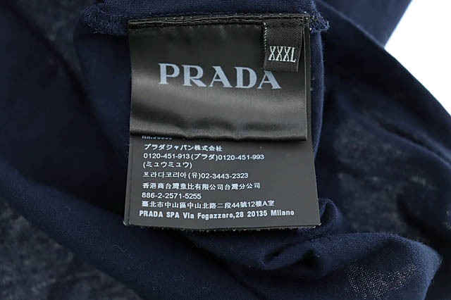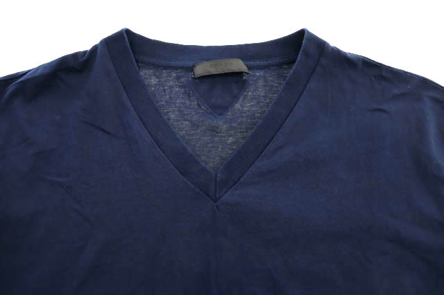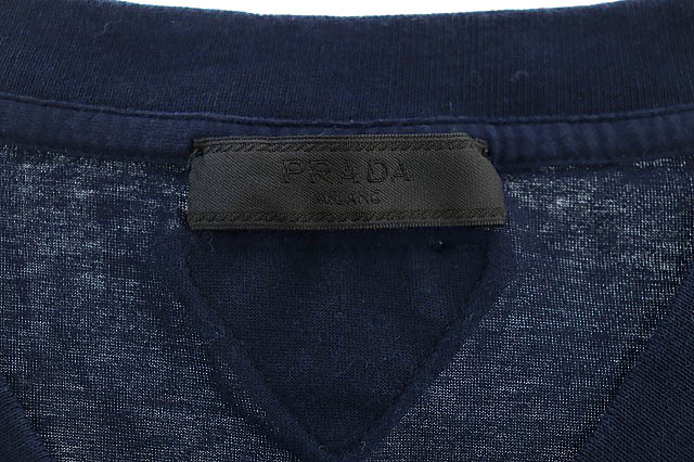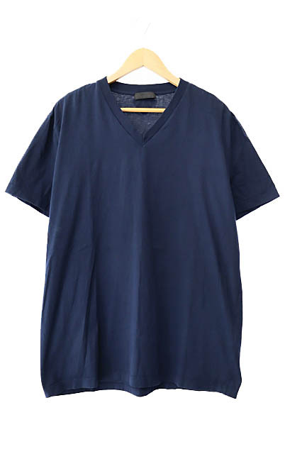 プラダ PRADA 2019年製 三角パッチ ロゴ Vネック 半袖 Tシャツ UJM493 XXXL 紺 ネイビー ブランド古着ベクトル 中古☆AA★250820 メンズ
