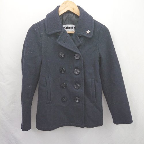◇ ⊇ Schott ショット earth music&ecology×SCHOTT 長袖 ピーコート サイズM ネイビー系 レディース E