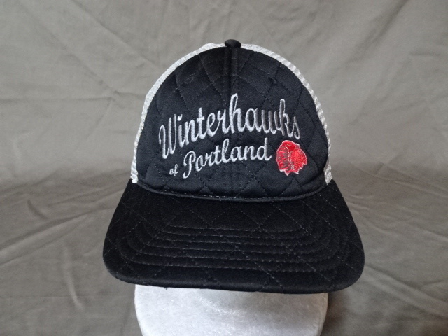 激レア USA購入 オレゴン州ポートランド NHL北米アイスホッケー 傘下 WHL【Portland Winterhawks】ロゴ刺繍入り メッシュキャップ 中古良品