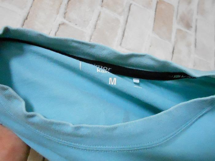 色はターコイズトニック。 首周りの伸び、首周り・袖口の色あせがあります。