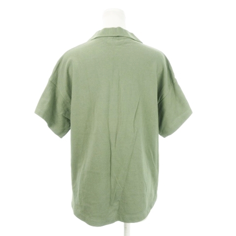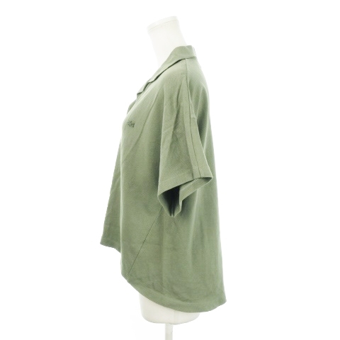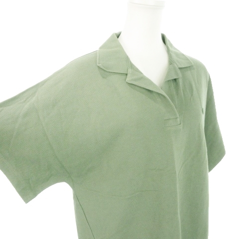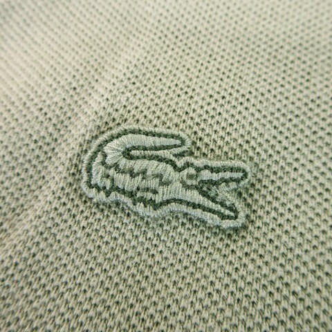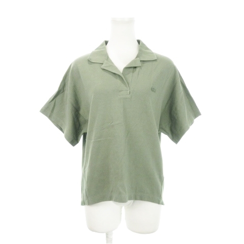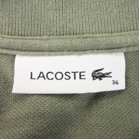 ラコステ LACOSTE ポロシャツ スキッパー 半袖 ラグラン 鹿の子 ロゴワッペン コットン 36 M 緑 カーキ /AH21 レディース
