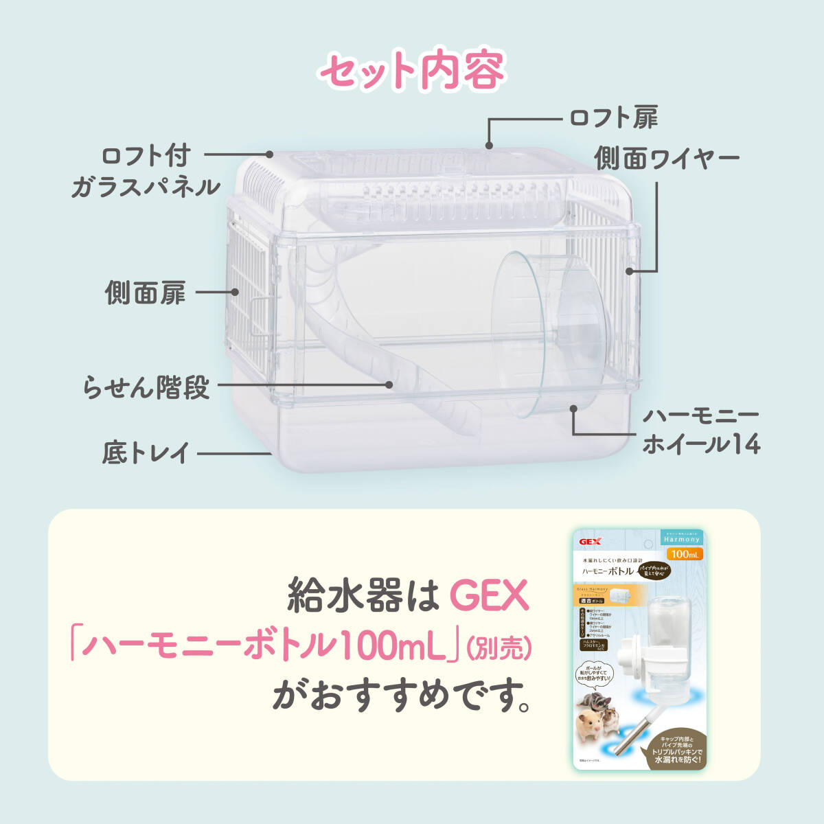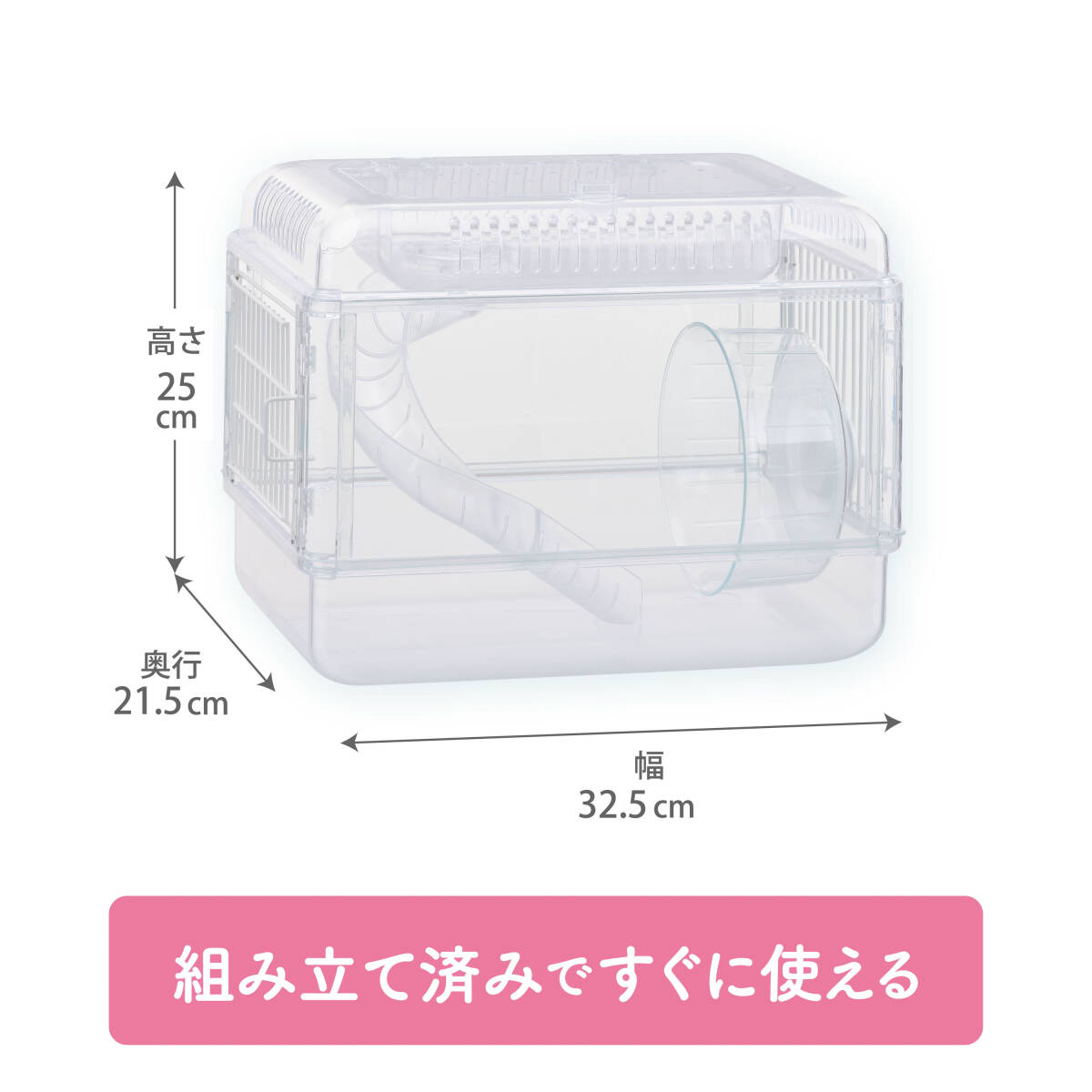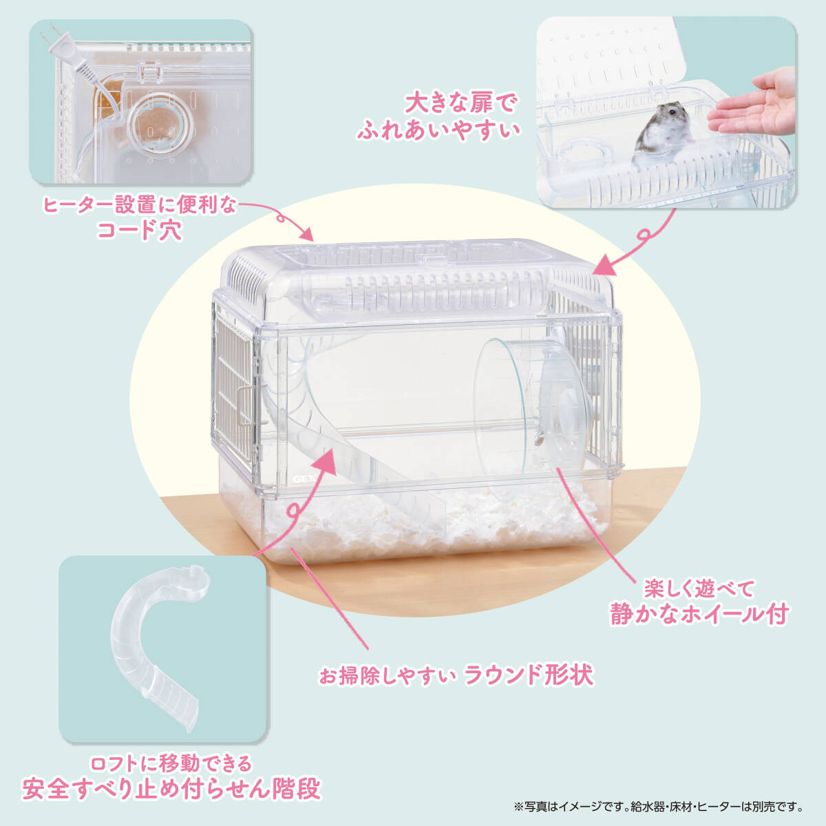 ■未使用品 GEX 【クリアフロント.30】クリスタル ドワーフハムスター用 らせん階段+とっても静かなホイール付 組立て不要のケージ 給水器は別売りです 詳細は画像.説明文で御願い致します