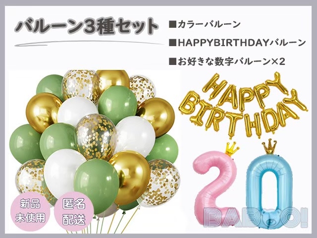 大きさ : 約30cm(カラーバルーン) 約40cm(HAPPY BIRTHDAY) 約100cm(ナンバーバルーン)