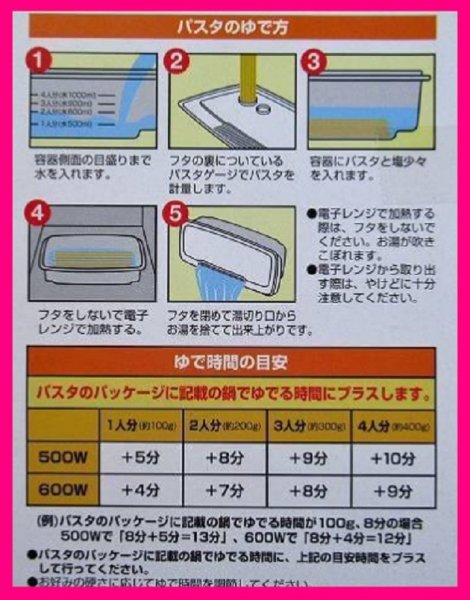・写真のような”レンジでパスタできる簡単調理器”です。♪。。日本製なので安心