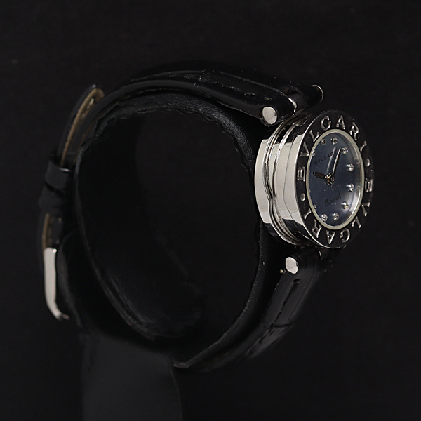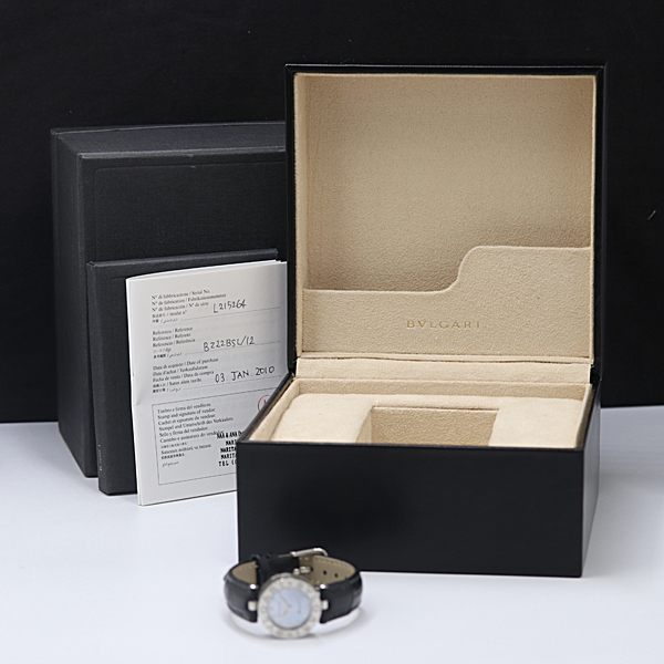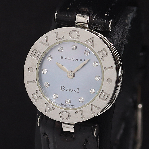 1円 保/箱付 稼働 ブルガリ ビーゼロワン BZ22S 石付 QZ 水色シェル文字盤 レディース腕時計 2917200 8KHT MST