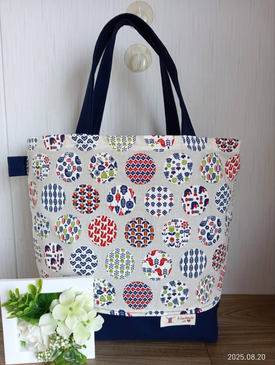 ハンドメイド 素敵 北欧風 サークル柄 トートバッグ ②