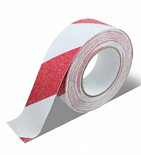 Jiaureshiby 階段 滑り止めテープ 5cm×10m ザラザラ シール 強力 安全対策 転倒防止 浴室 床 防滑 すべりどめ 事故防止 粘着 ノンスリップテープ 滑り止めシート 耐水 厚手 鉱物粒子 貼るだけ簡単 防水 階段 屋外 屋内 バスルーム 倉庫 玄関 区切り (レッドとホワイト)