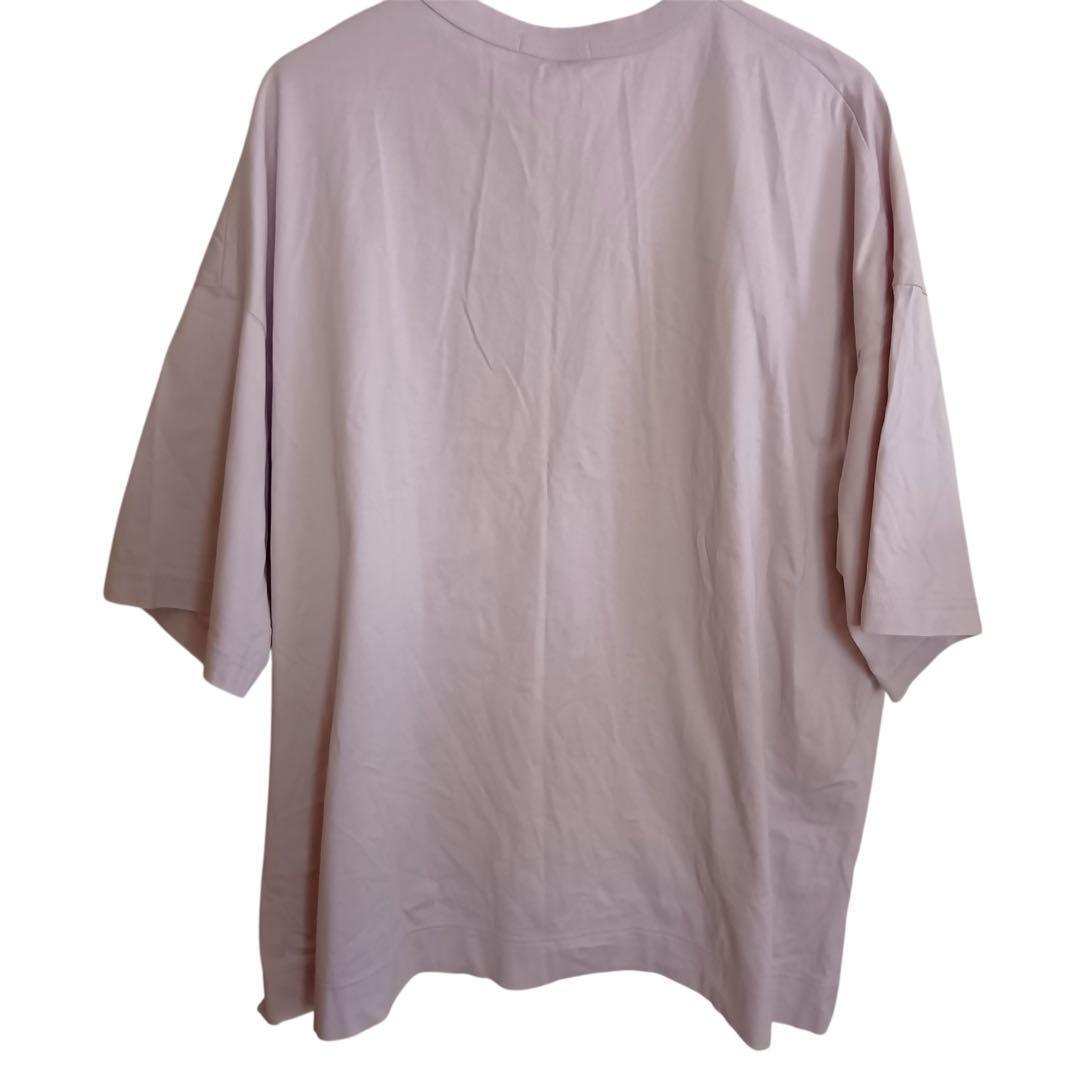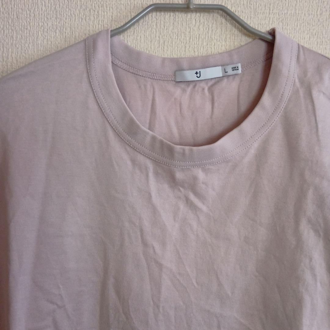 柔らかいピンク色のLサイズのTシャツ、リラックスしたフィット感が特徴です。