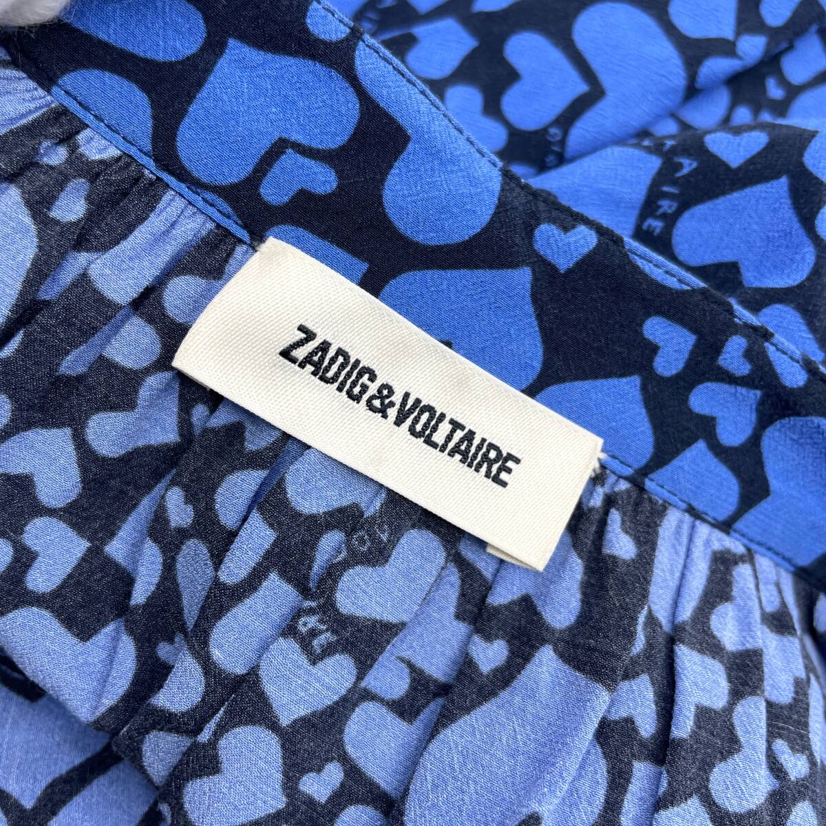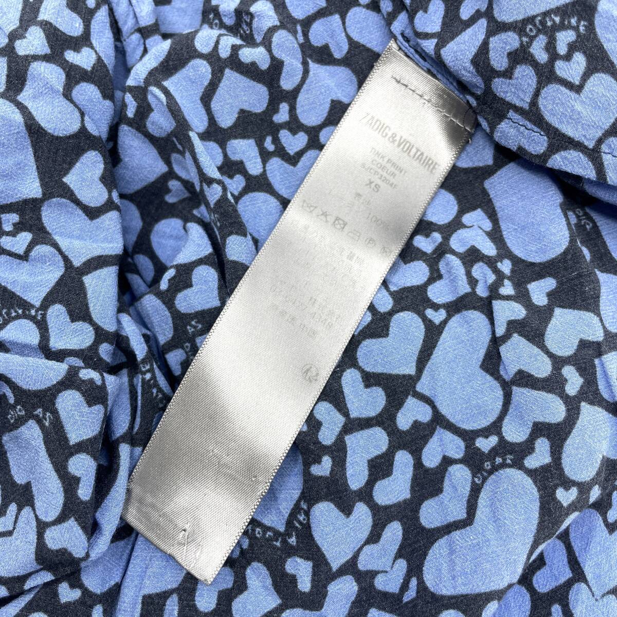 ZADIG&VOLTAIRE ザディグ・エ・ヴォルテール 長袖 シャツ Vネック ハートモチーフ 総柄 ブルー×ブラック ビスコース