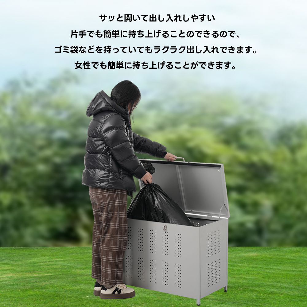 • 【幅広く適用】ゴミの屋外置き場として使用だけではなくて、お庭やベランダ、玄関などの収納ボックスとしても適用します。見た目も清潔感があり、シンプルなデザインなので場所を取らずに収納できます。住宅を選ばず調和してくれます。