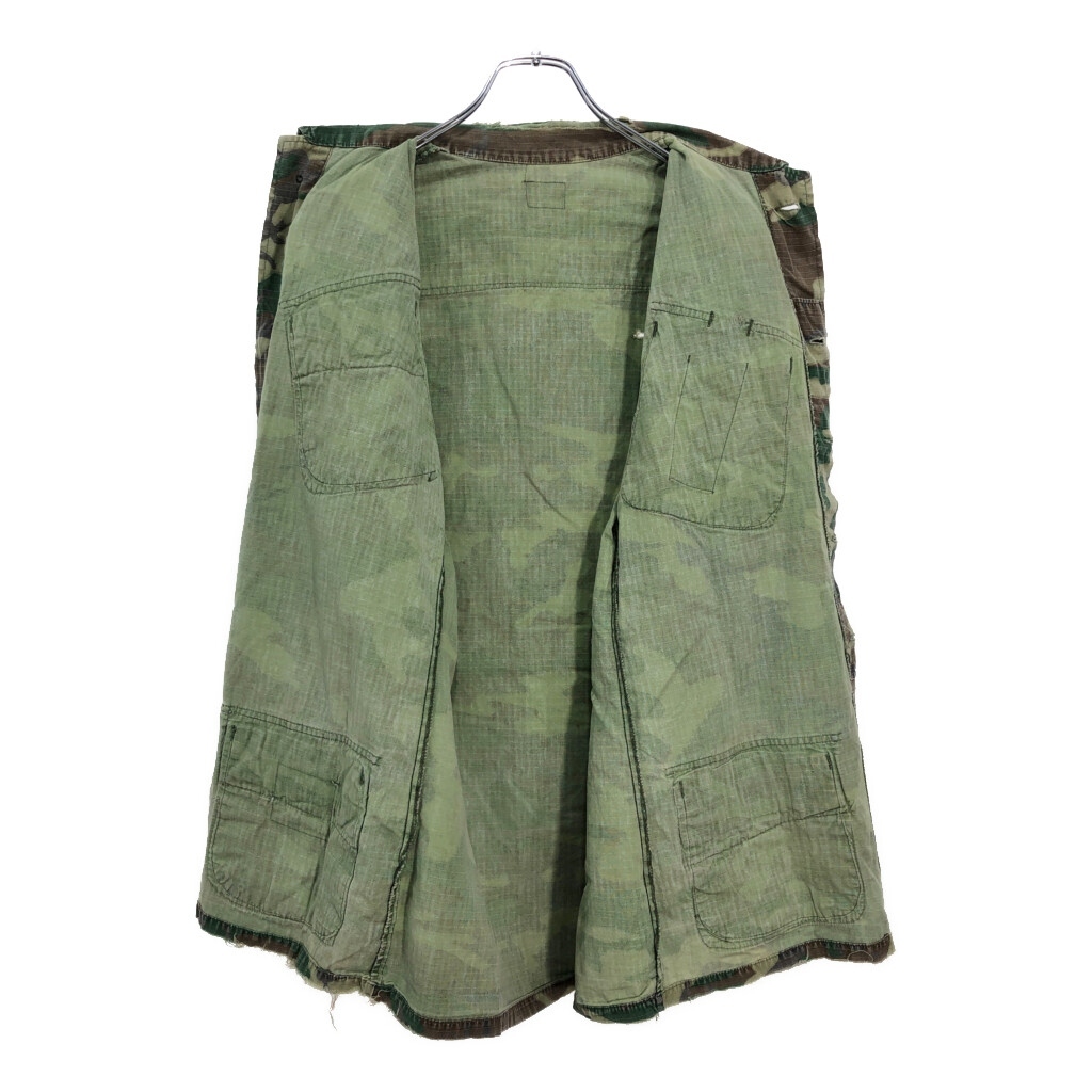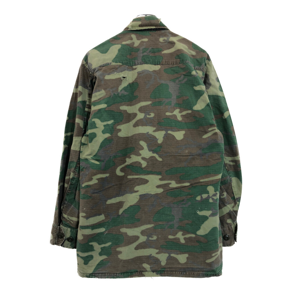 [商品管理番号] U9805 [ブランド] /米軍実物 U.S.ARMY [サイズ] S相当 [実寸サイズ] 肩幅:約44cm 着丈:約77cm 身幅:約54cm 袖丈:約60cm [主な素材] 表地 : コットン [色] グリーン [仕様] 60年代 リップストップ ヴィンテージ、ミリタリー ファティーグジャケット ERDL迷彩 [状態] 汚れ:袖先 キズ:裾 破れ:襟、袖、脇、胸、背中、腰 特記事項:色褪せ、タグ欠損、リペア跡、ボタン欠損、糸ほつれ | |||