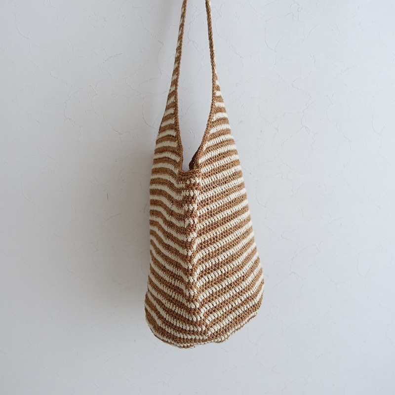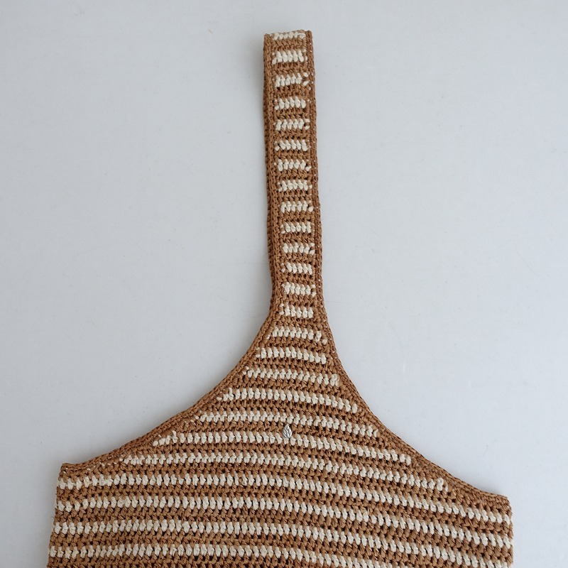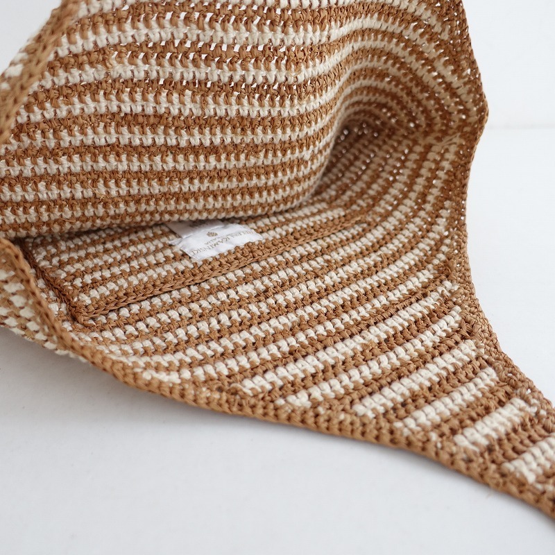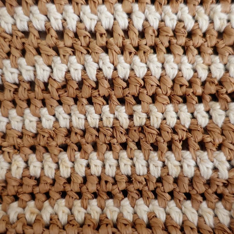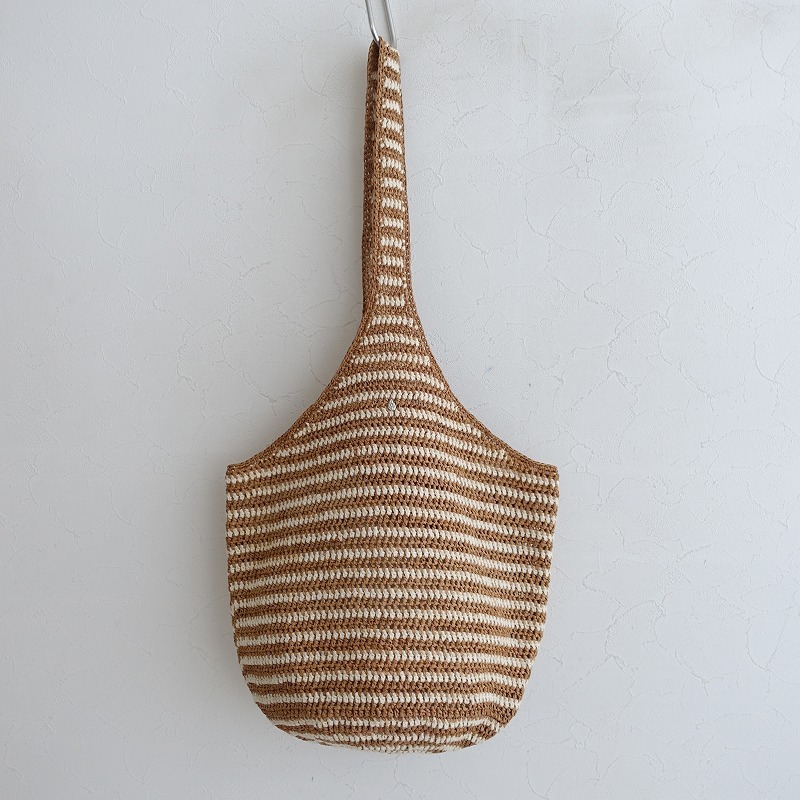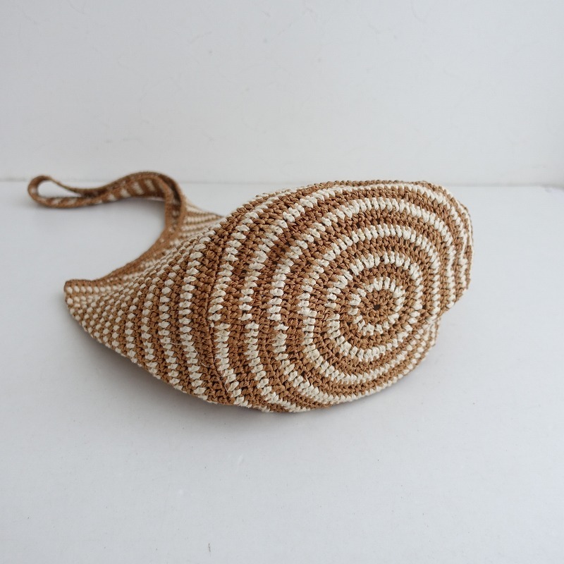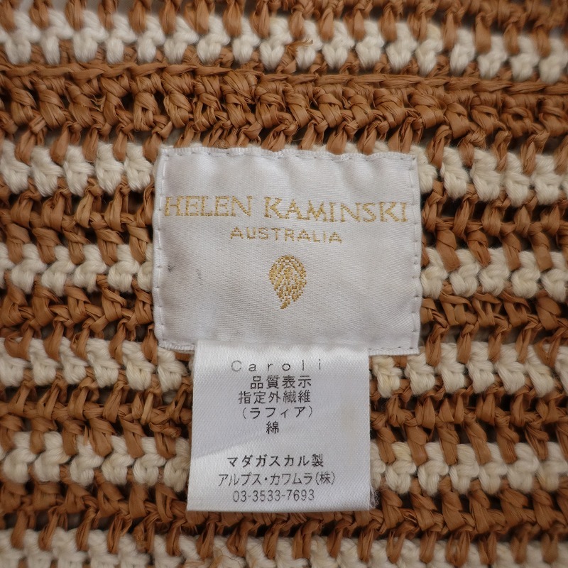 | HELEN KAMINSKIのワンショルダーカゴバッグです。カラーはベージュ×オフホワイトで、開口はオープンです。素材は指定外繊維(ラフィア)、綿で、内側にオープンポケットが1個ございます。 |
