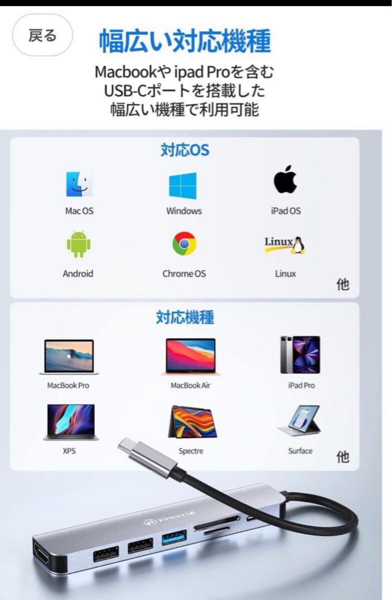 UL/SGS認識取得の USB-Cハブ:必要なすべての機能を完璧に組み合わせたUSB-Cハブ。 USB3.0 x3、4K @ 30Hz HDMI、SD / TFカードアダプター、最大100W / 20V /5AType-C電力供給充電インターフェースが備えられているUSBC-HDMIハブ。