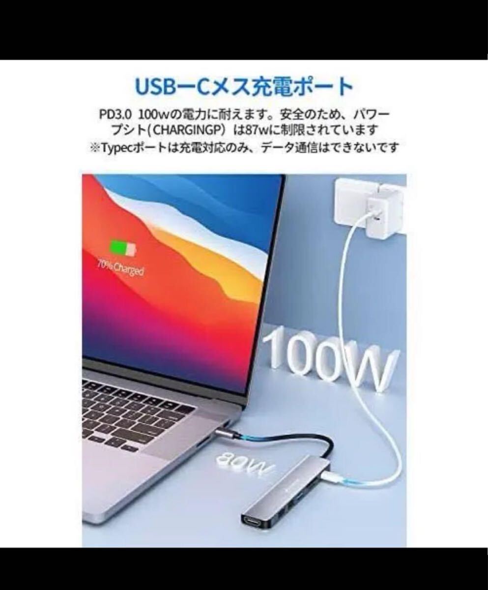 100Wの電力出力が適用:直接USB-Cハブを通して100Wの充電ができます。MacBook Pro /Airまたはその他のUSB-Cデバイスにも適用します。仕事に最適なUSB-Cハブです。