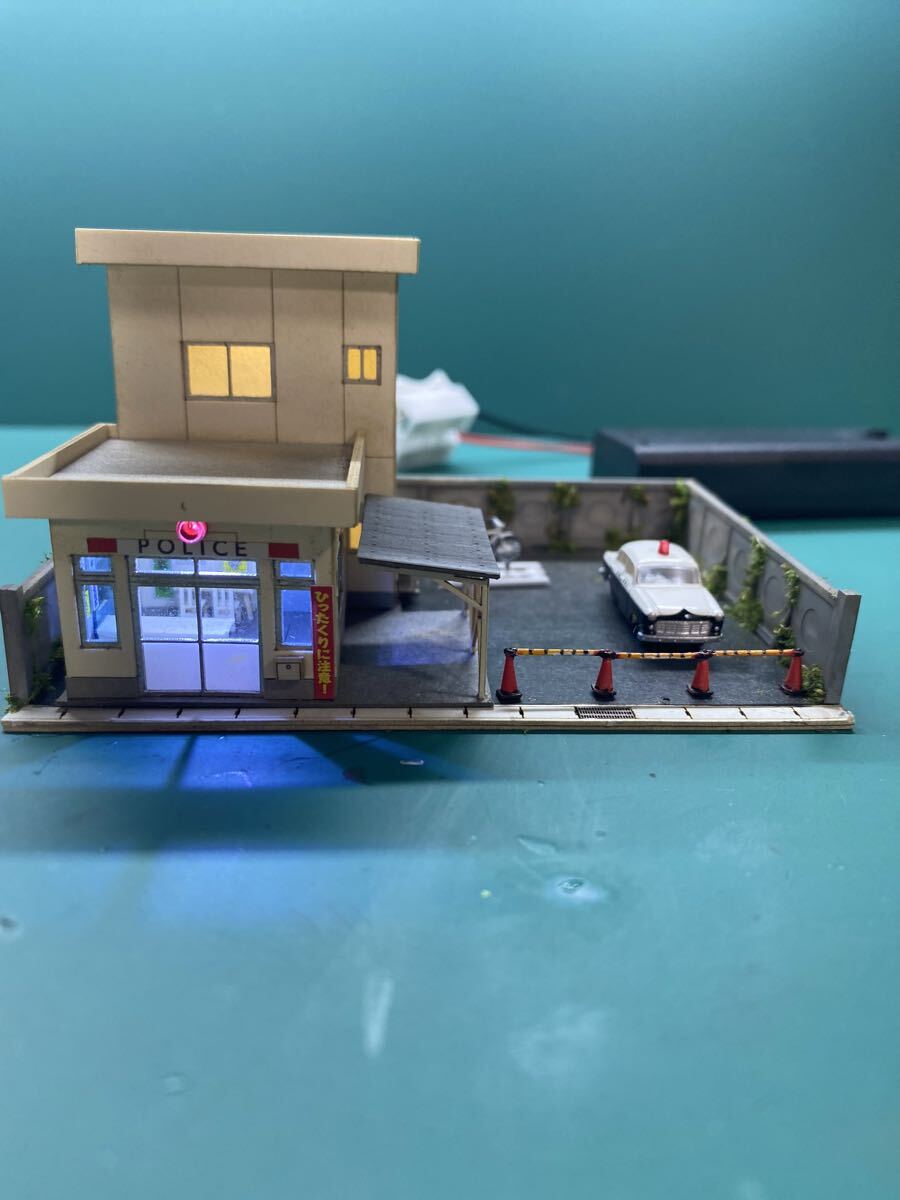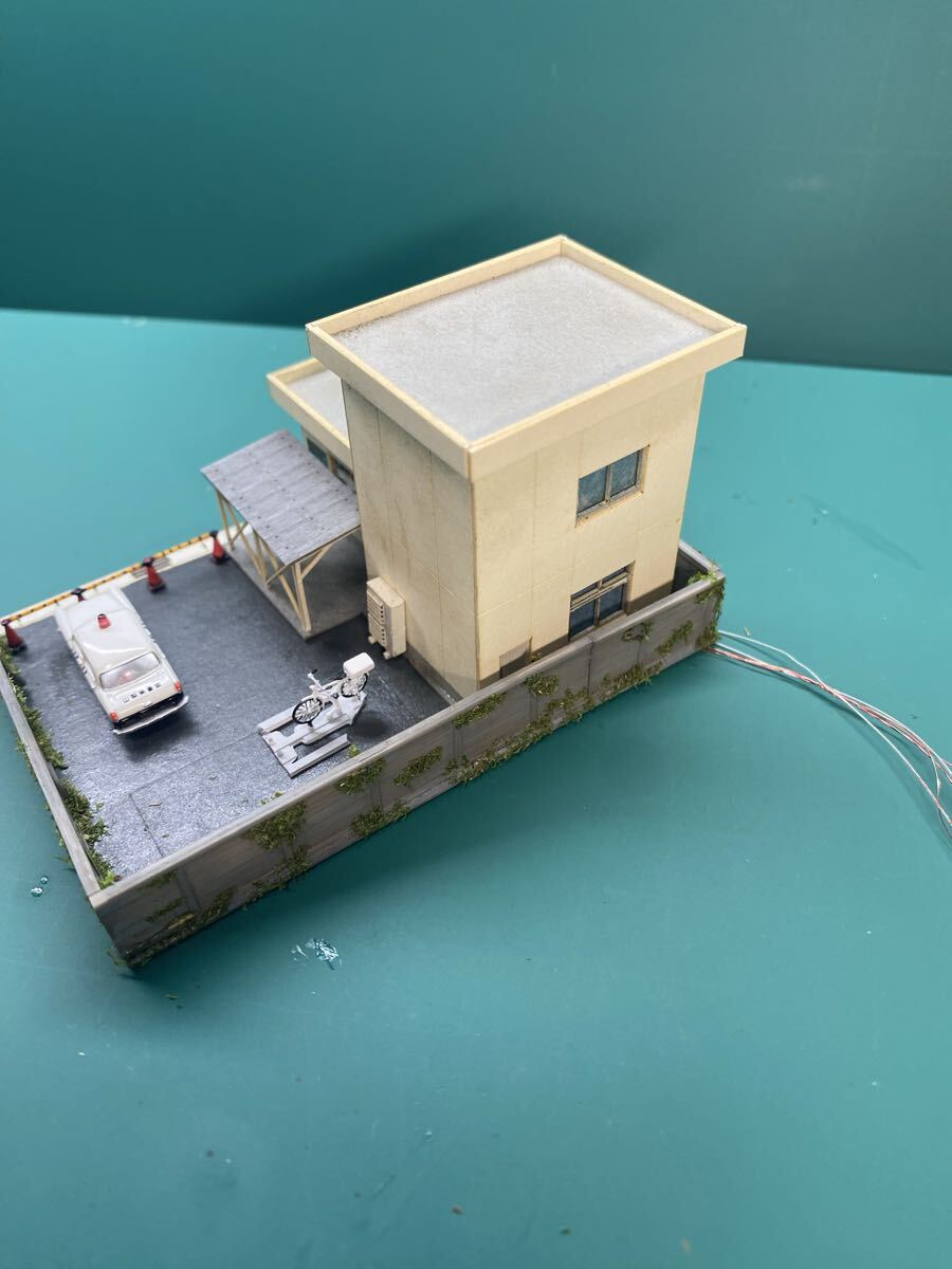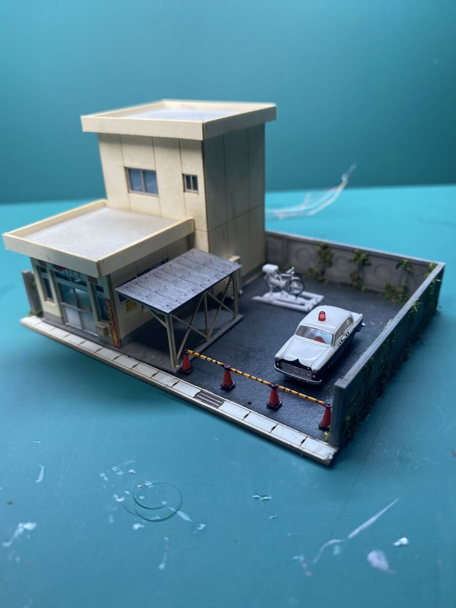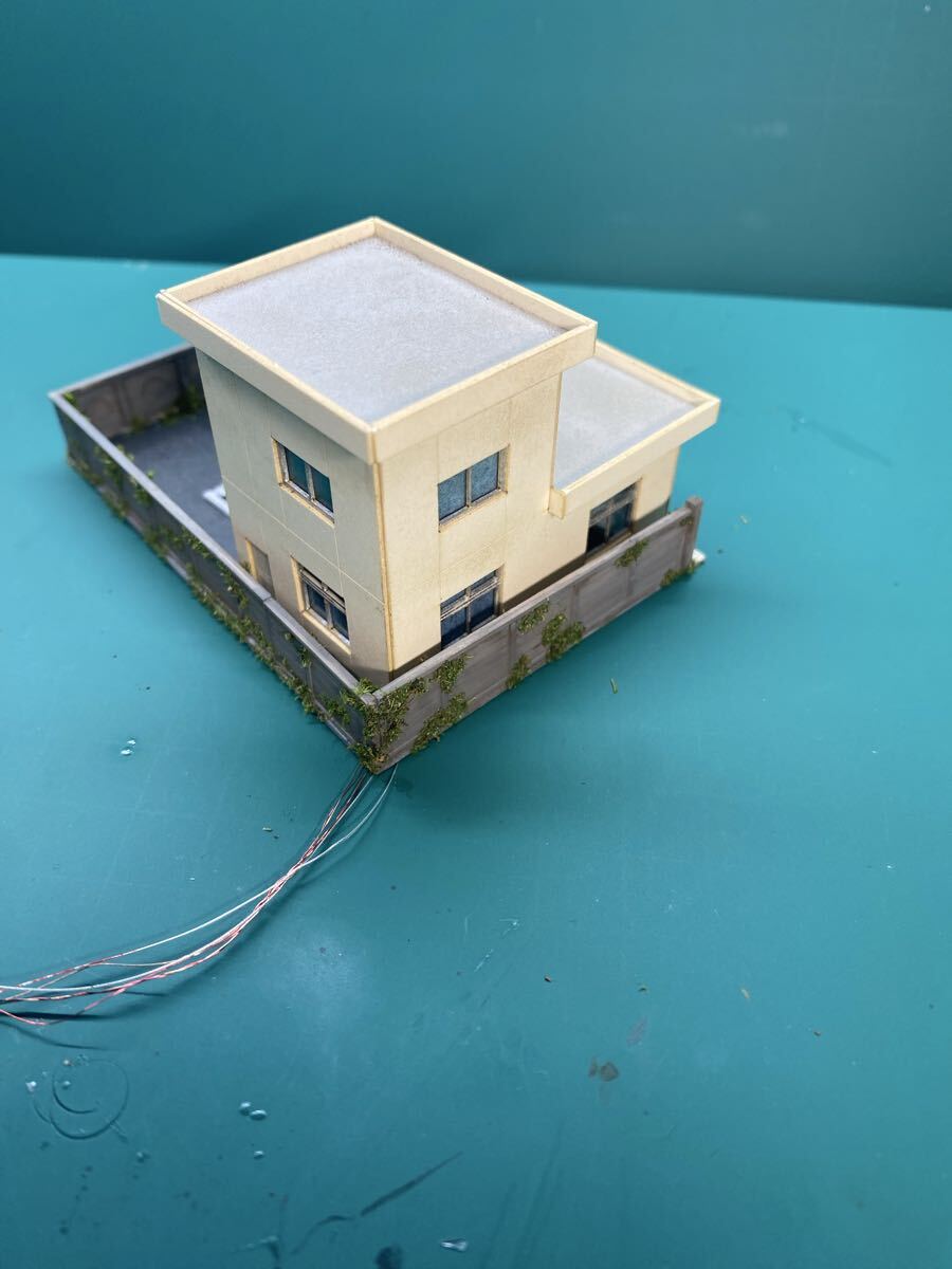 建物全体にウェザリングマスターにてウェザリングして塀はウェザリングと雑草で仕上げてます。