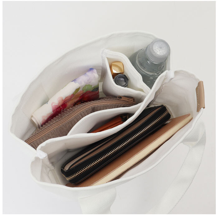商品説明 | ・・すっきり収納できる♪デイリー使いにぴったりな、仕切り付きミニトートバッグが登場。 ・【ちょうどいいサイズ感】 ・大きすぎず小さすぎない!お出かけに必要な小物がしっかり収まるミニトート。マチがあり、荷物が入っていない状態でも自立。 ・【カジュアルコーデにぴったり】 ・ナチュラルな風合いのキャンバス素材を使用。軽量で丈夫なので、ガシガシ使えるのが嬉しい! ・【オープン開口】 ・開口部はガバッと開いて小物を取り出しやすい、オープンタイプ。 ・【仕切り付きの3ルーム仕様】 ・内側は3ルームに分かれており、急いでいる時も中身がひと目でわかる!誰でも収納上手に♪ ・【A5サイズ対応の大ルーム】 ・A5サイズのノートや長財布が、横向きにすっぽり! ・【使い勝手の良い中ルーム】 ・ミニポーチやタオル、サニタリーグッズなどをIN☆ ・ペットボトルが収納できる小ルーム】 ・・500mlペットボトルや折りたたみ傘を縦向きに収納♪倒れる心配なくサッと取り出せて、とっても便利◎ ・【小物が迷子になりにくい!】 ・内側・外側合わせて3つのオープンポケットを装備!鍵やパスケースなどの収納に。 ・【お気に入りをチョイス】 ・ベーシックカラーや優しげなパステルカラーをラインナップ!使いやすいシンプルなデザインも魅力。 ・【ポケット仕様】 ・内側:オープンポケット×2 ・前面:オープンポケット×1 |