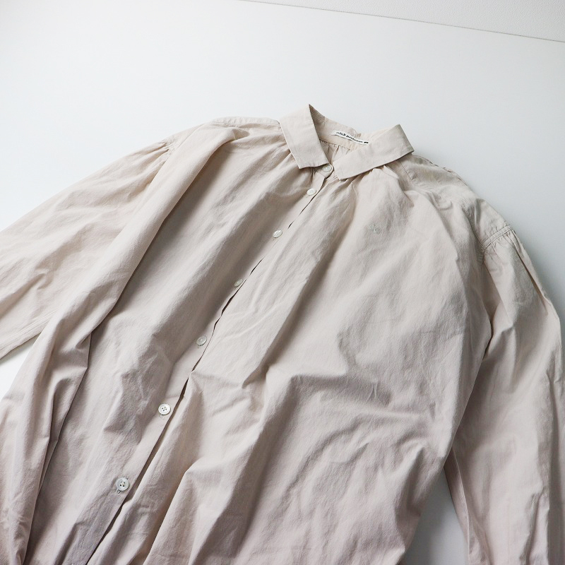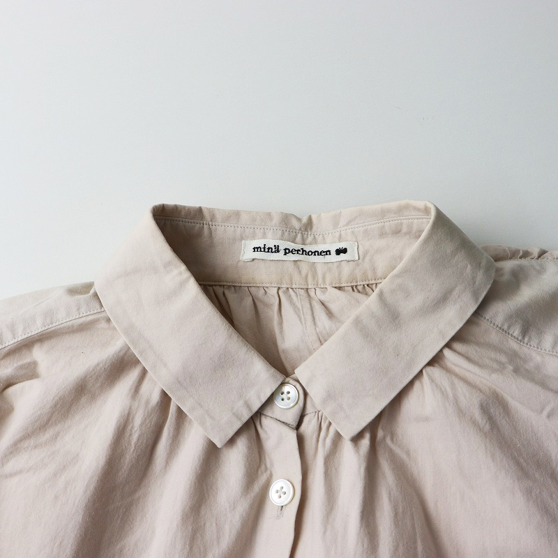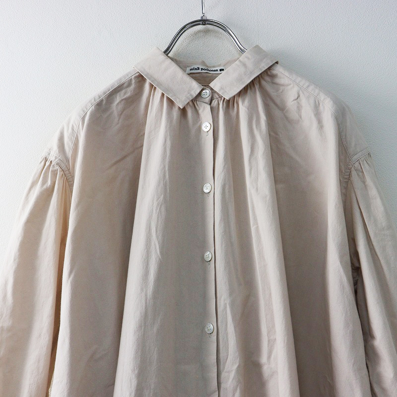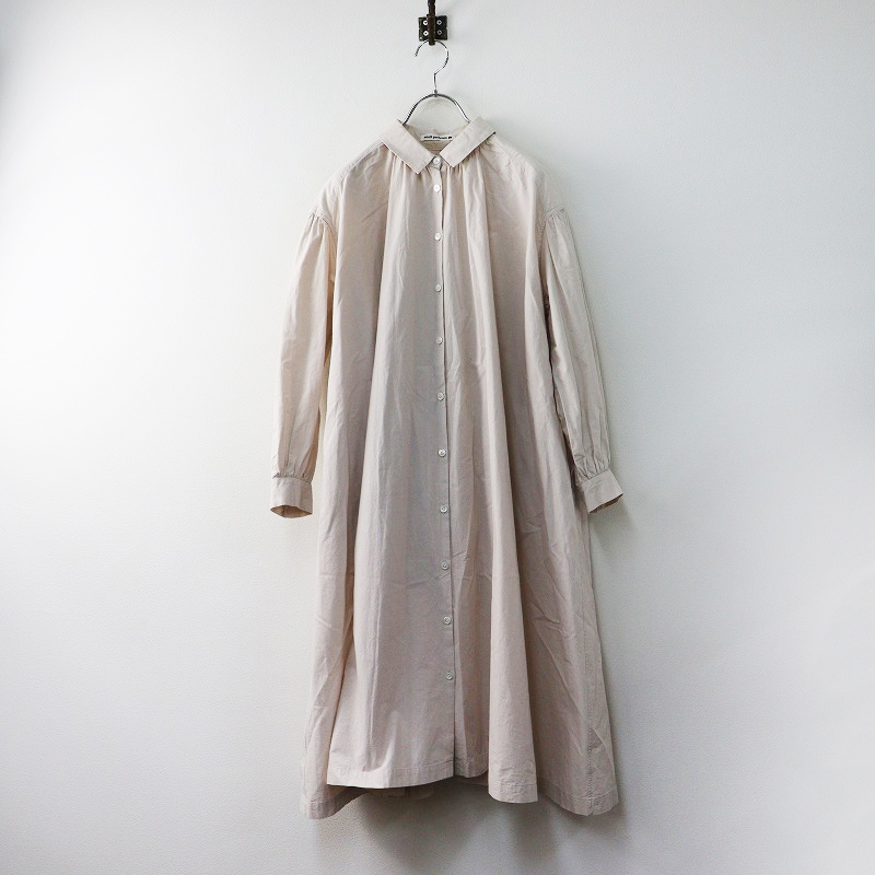 ミナペルホネン mina perhonen matinee シャツドレス 36|ピンク ワンピース コットン ギャザー フレア ワイド ロング【2400014566505】
