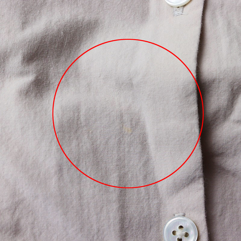肩から左袖にかけてヤケによる色褪せが見られます。首ぐり・袖口内側にやや汚れが見られます。フロントやサイドにいくつか小さな色抜けがあります。