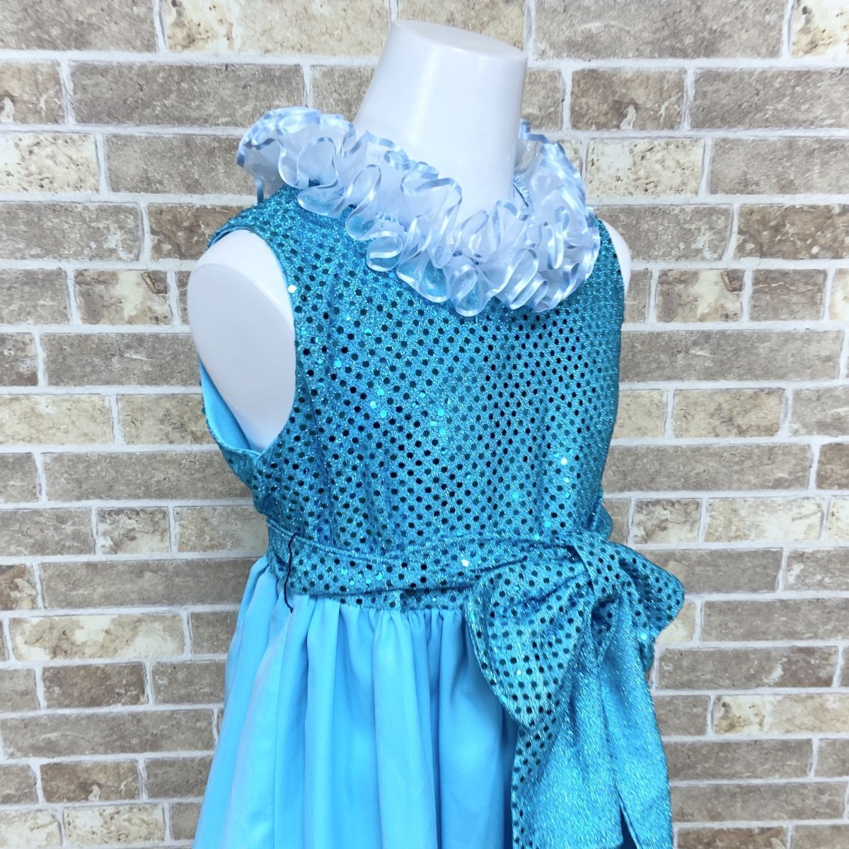 子供ドレス ワンピース 青系 スパンコール 120~130位 既製品? カラードレス 発表会 イベント 中古13330