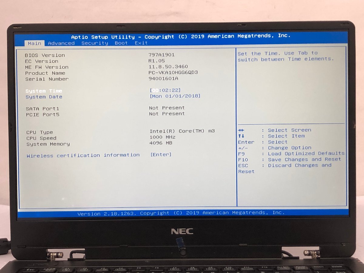 ジャンク/ NEC PC-VKA10HGG6QD3 Corem3-7世代 メモリ4GB ストレージ無し 【K19759】