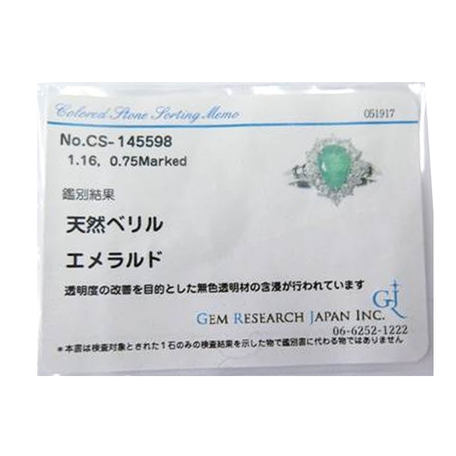 *Pt900(プラチナ) *エメラルド:1.160ct *ダイヤモンド:0.750ct *モチーフの大きさ(約):縦13.7mmx幅11.5mmx厚6.0mm *号数:15号 *アーム幅(約):2.0mm~2.3mm *重さ(約):5.7g *ランク:S *新品仕上げ済み *付属品:ソーティング付き ※詳細はお気軽にお問い合わせください。 (RE) 28512 10011932