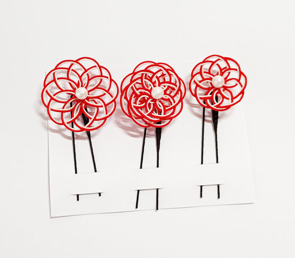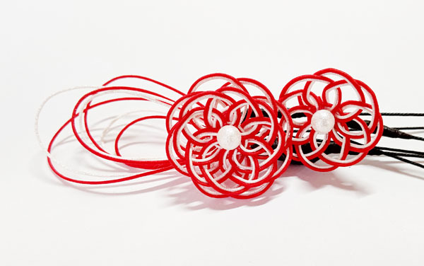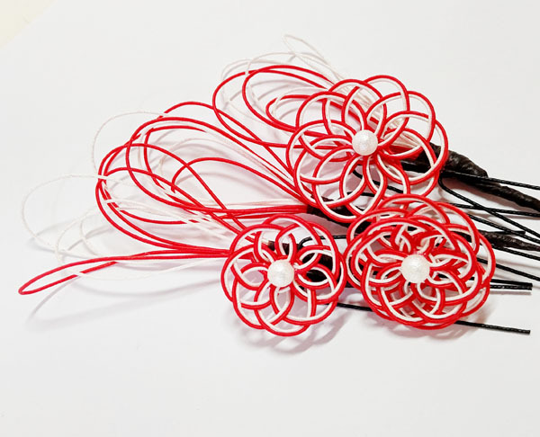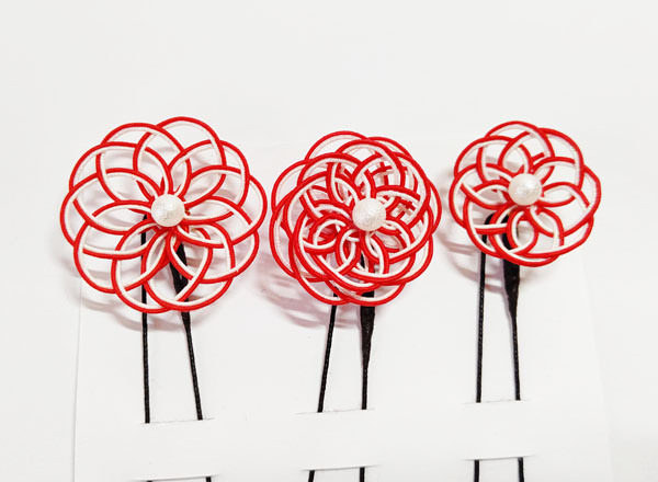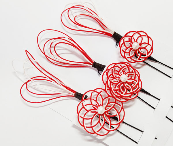 | 新品未使用 ☆髪飾り 水引 Uピン 赤白花しずく 6本セット | |