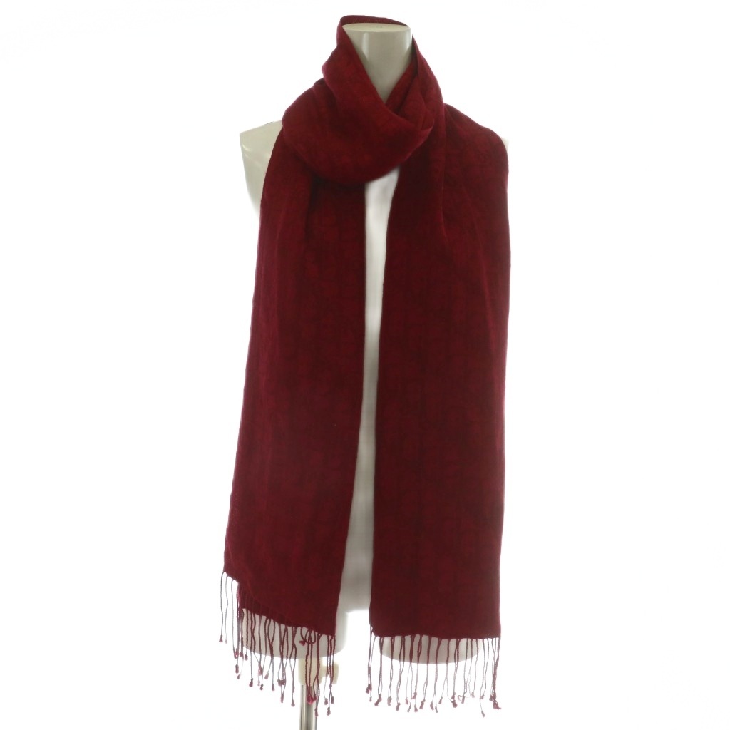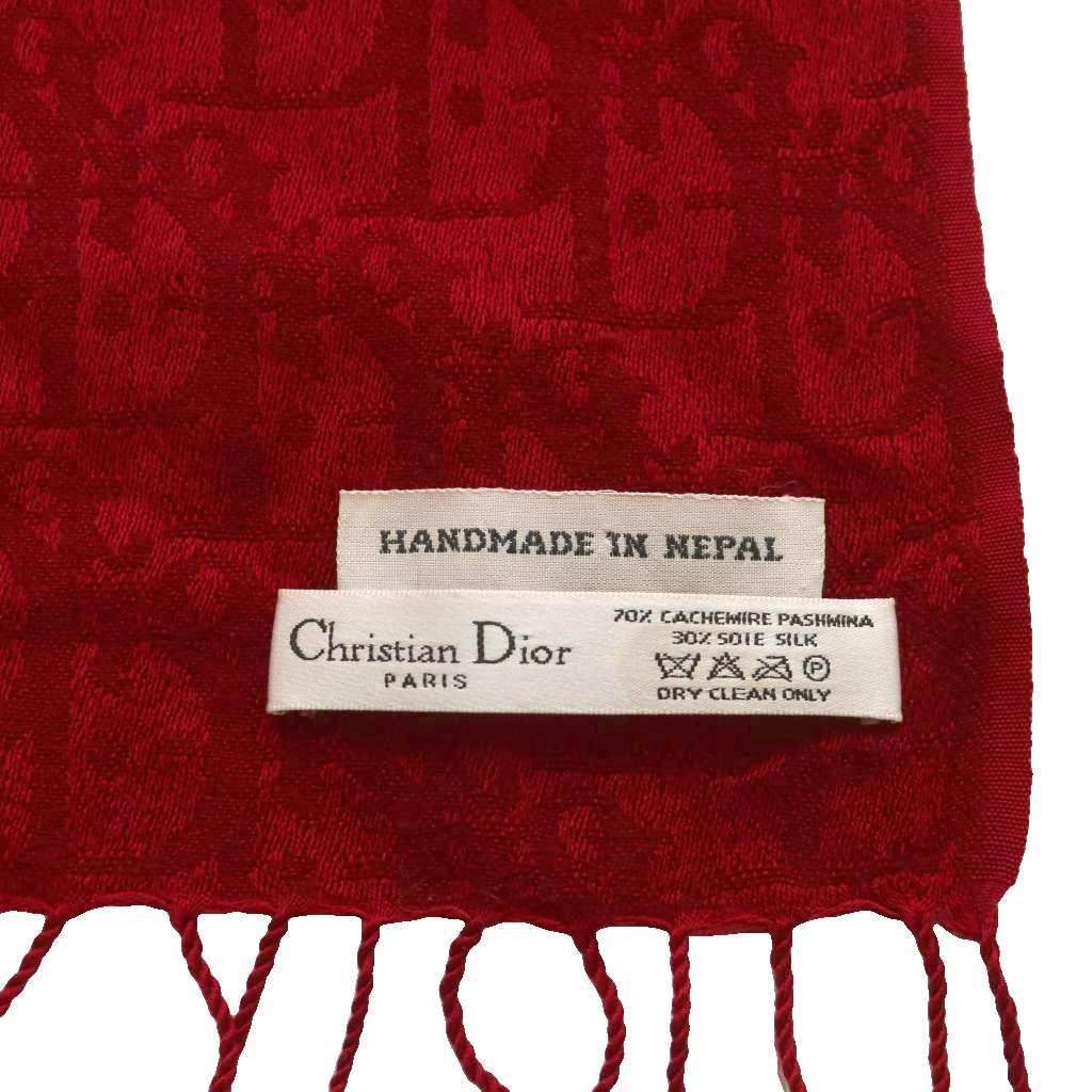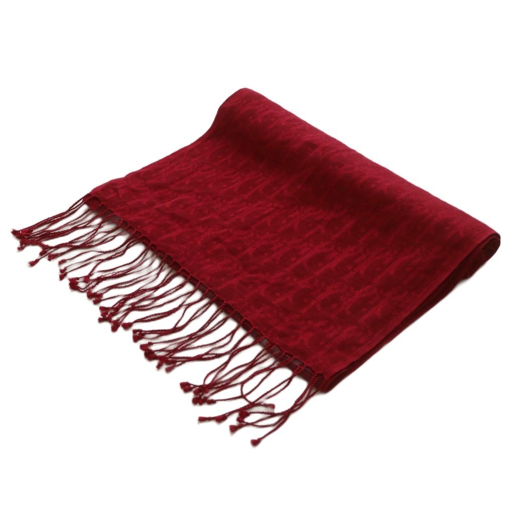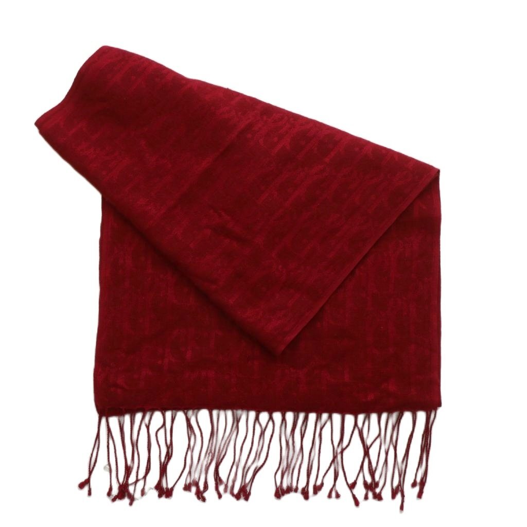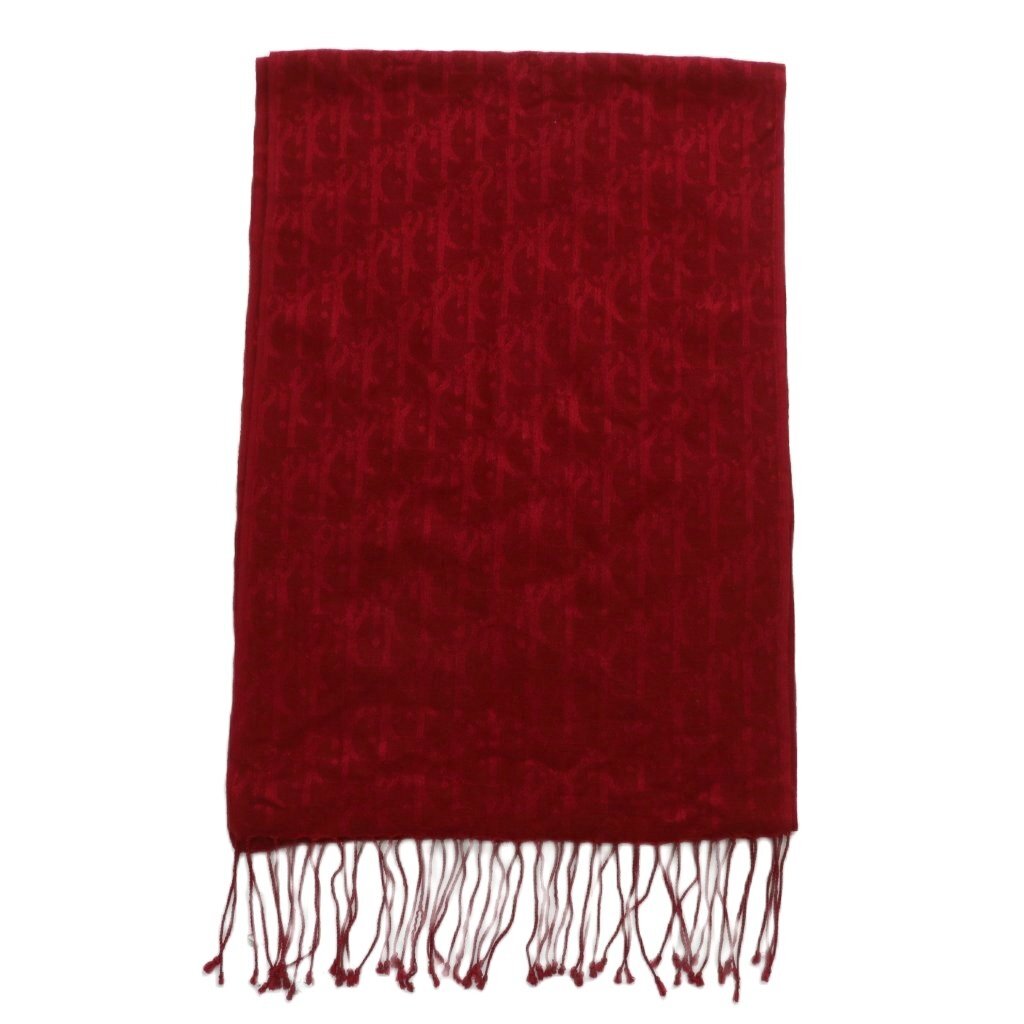 クリスチャンディオール Christian Dior トロッター マフラー ストール カシミヤ シルク混 ロゴ 総柄 フリンジ 赤 レッド レディース