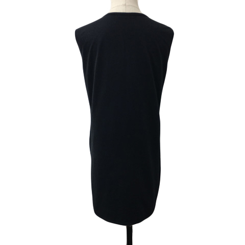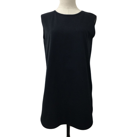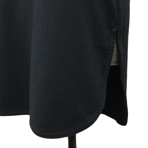 プラステ PLST カットソー チュニック プルオーバー ラウンドネック 無地 スリットノースリーブ M 黒 ブラック レディース