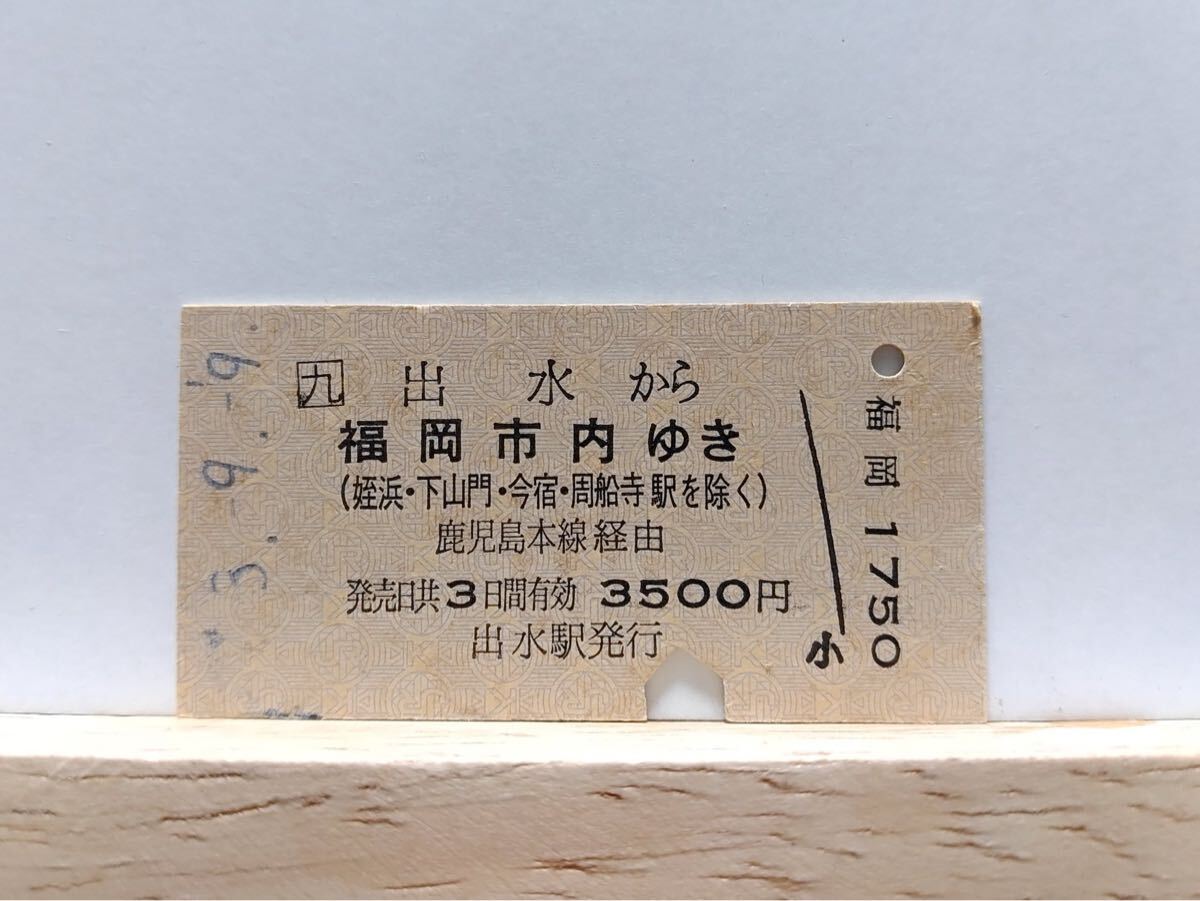 【切符/硬券】JR九州 出水 → 福岡市内 鹿児島本線経由 出水駅発行 @f