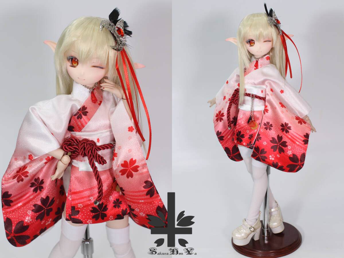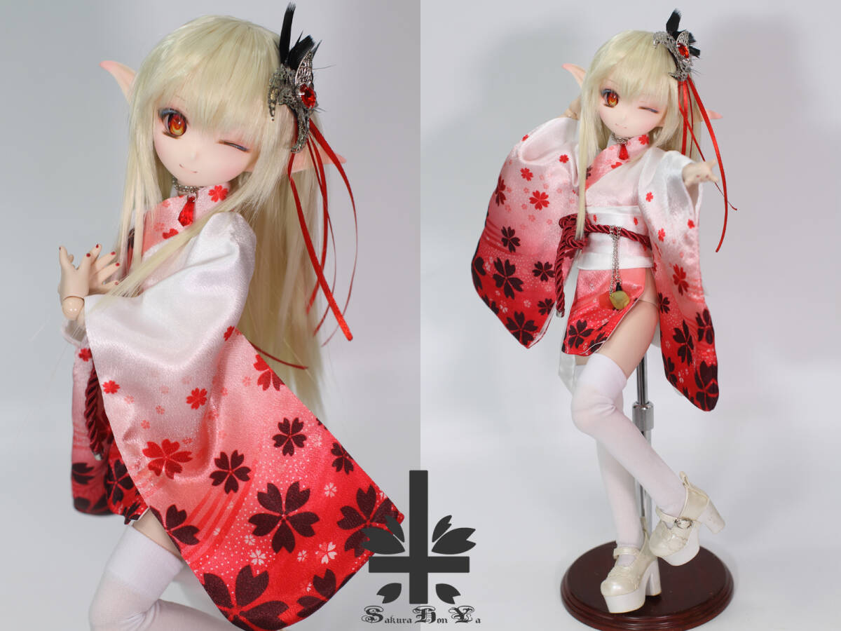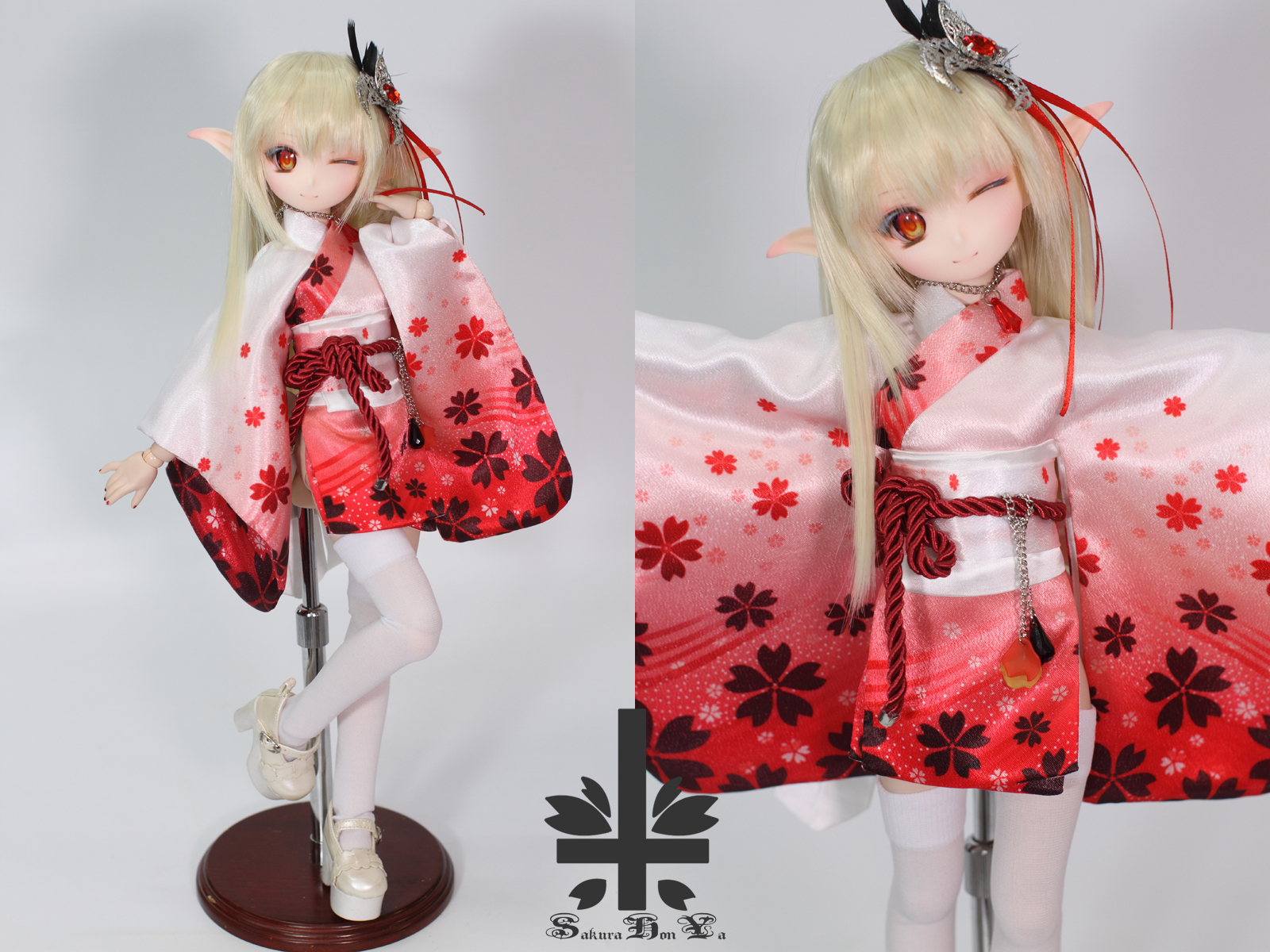 | * 商品説明 * ご覧頂き ありがとうございます。 「桜本屋」華麗短い和服 《焔。舞桜》 ミニドルフィードリーム MDD-S/M/L胸 どちらにも着せ付けていただけます。 セット内容:
