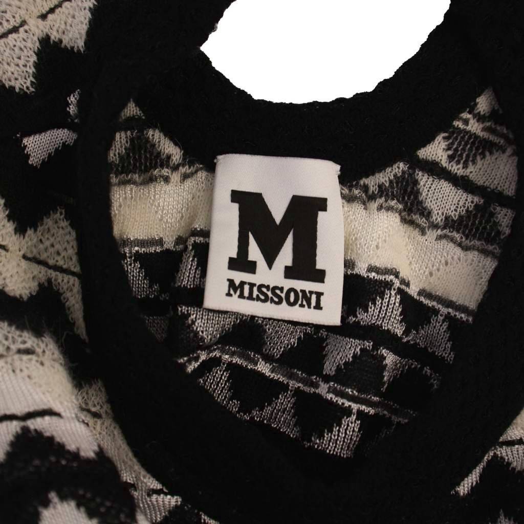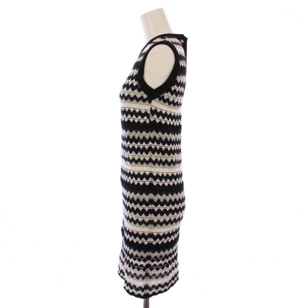 エムミッソーニ M MISSONI ニット ワンピース ノースリーブ ミニ丈 ボーダー柄 ウール 40 黒 白 /BM レディース