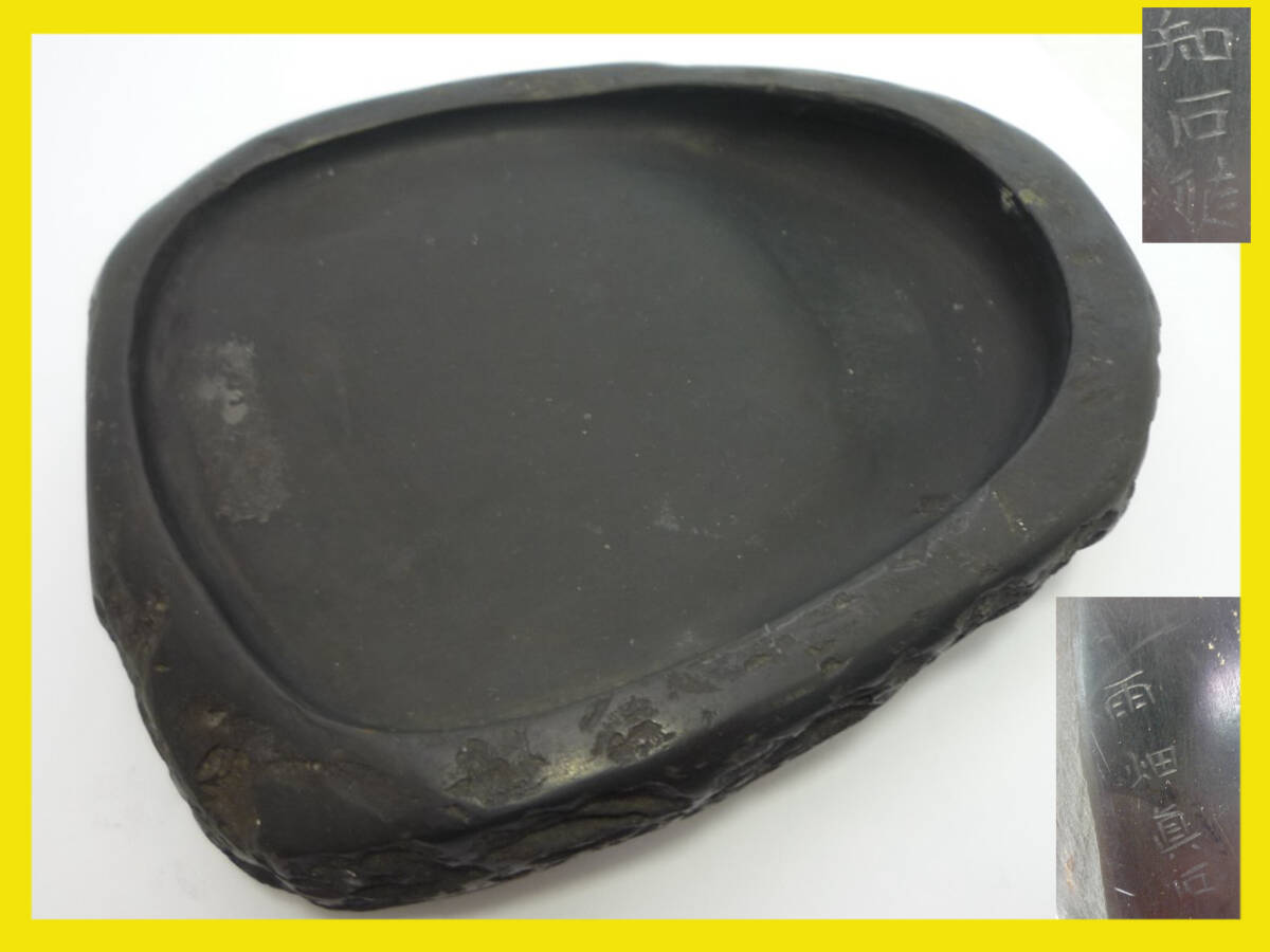 雨畑真石 望月知石 硯 すずり 和硯 古硯 伝統 銘有 銘刻印 在銘 写経 黒 書道具 習字 手習い 甲州 旧家蔵出 雨宮弥兵衛 レア 希少 文房具E3