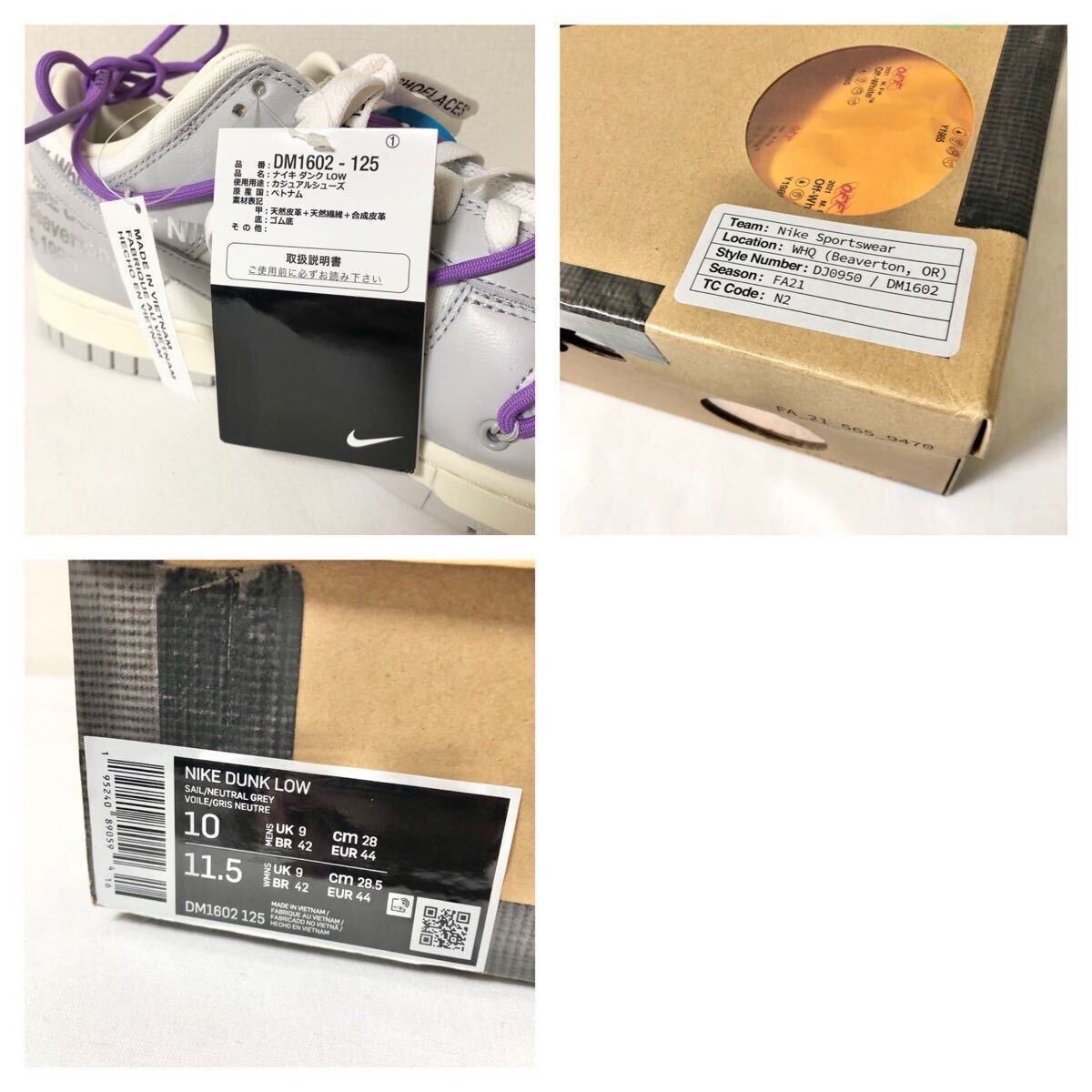 OFF-WHITE × DUNK LOW "LOT 47 OF 50" DM1602-125 (セイル/ニュートラルグレー)