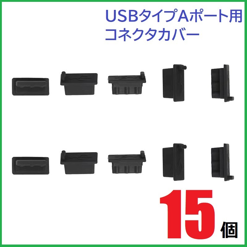 USB コネクタカバー タイプA メス用 15個 シリコン製 ブラック