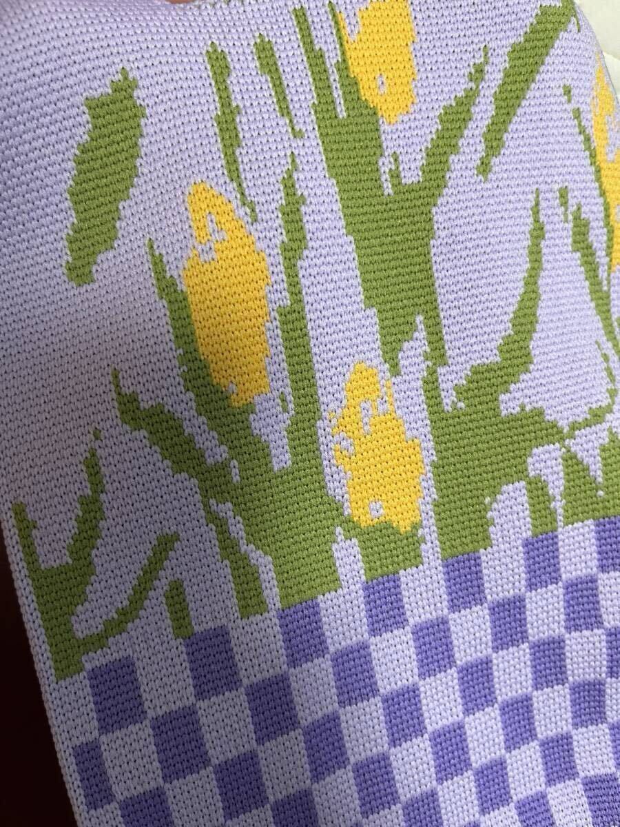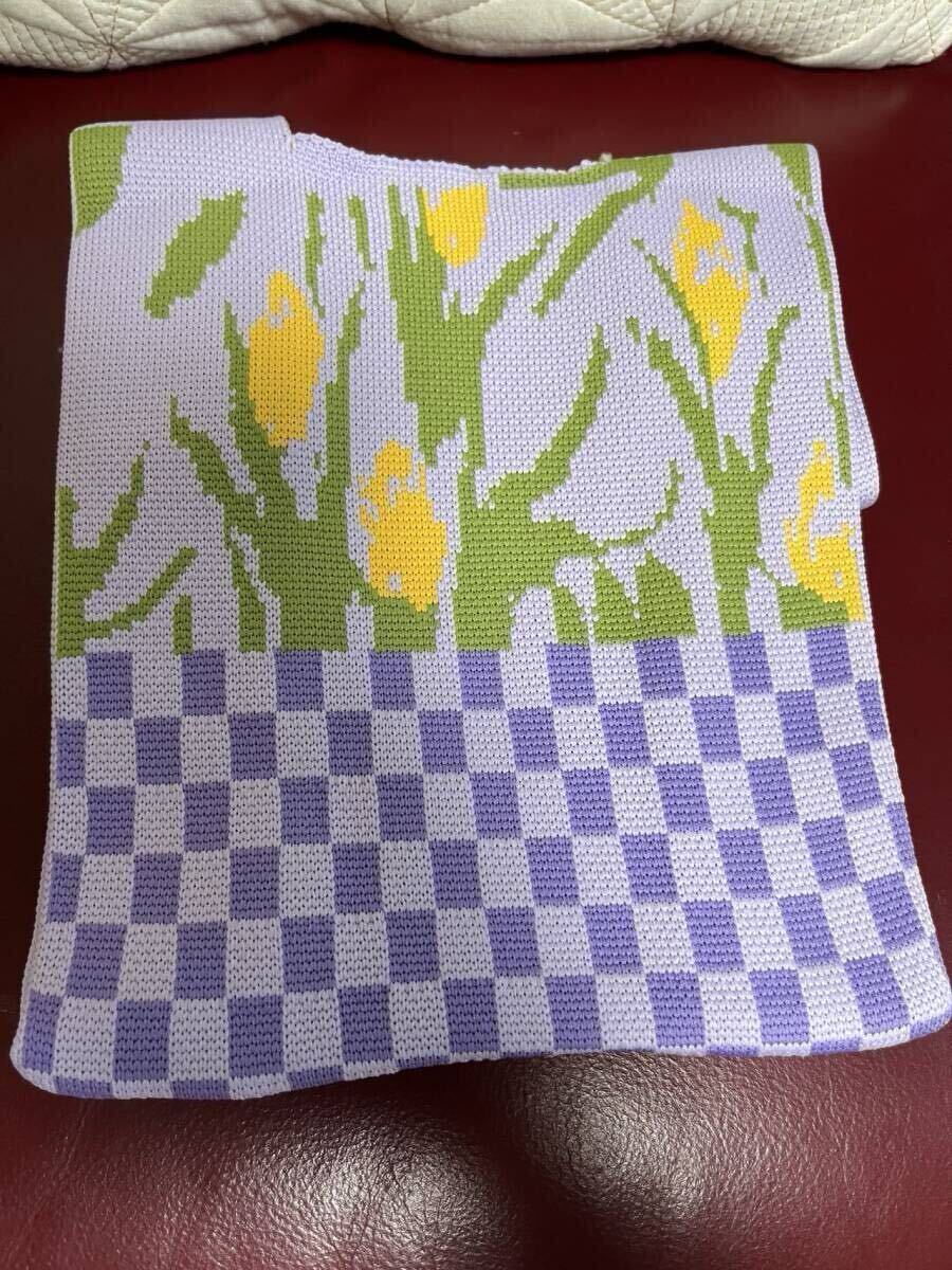 ニット編み ミニバッグトートバッグ レディース ハンドバッグサブバッグ軽量 紫