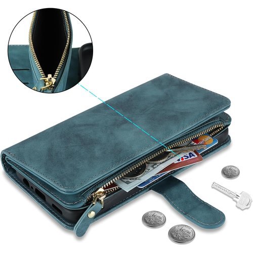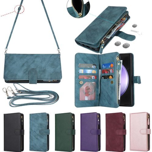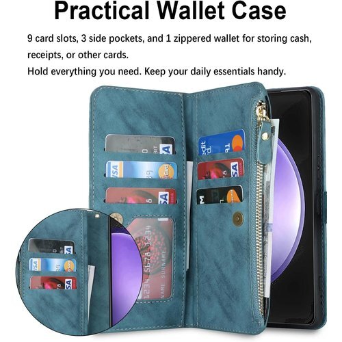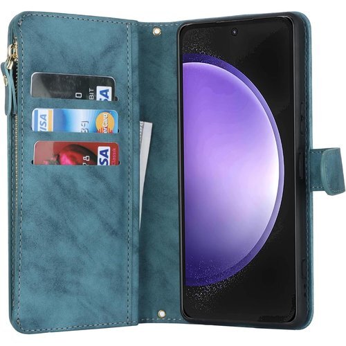 for Galaxy S23 FE ケース サムスン for galaxy s23fe 縄掛けケース クリア for samsung galaxy s23 fe 手帳型 財布型 ICカード コインポケット ストラップ付き カード 収納 小銭入れ ファスナーポケット付き PUレザー 6色 ブルー