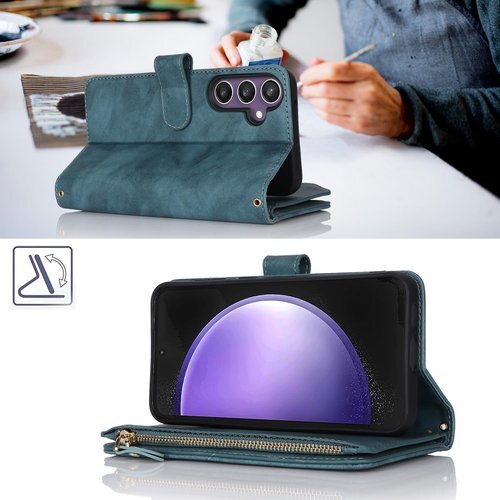 Eastwave for Galaxy S23 FE 銭入れ ファスナーポケット付き PUレザー 6色 ブルー 2713