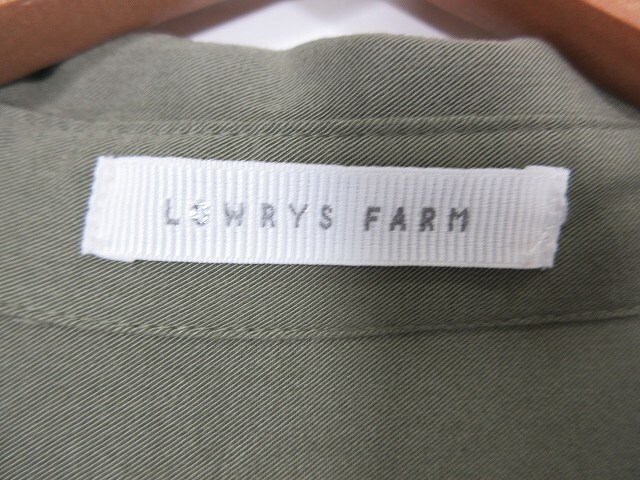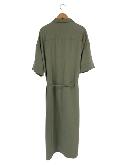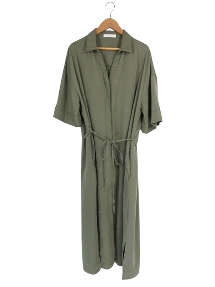 ローリーズファーム LOWRYS FARM スキッパー シャツ ワンピース 半袖 ロング 紐ベルト付き 無地 サイズF カーキ QQQ レディース