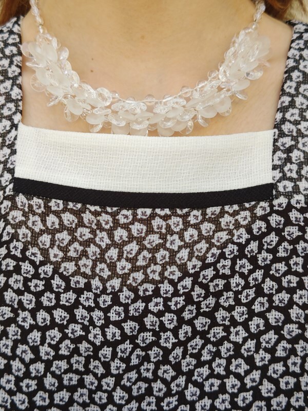 スクエアネックの白黒無地切り替えやお洒落な黒バックル