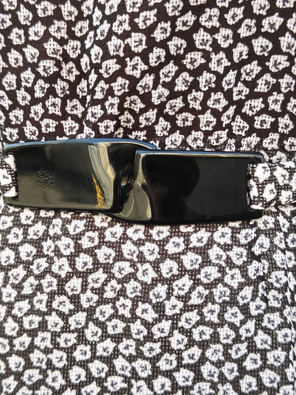 ヴィンテージ昭和レトロ古着*モノトーンお花柄♪ベルトお洒落ワンピ60’s70’sモダン国産