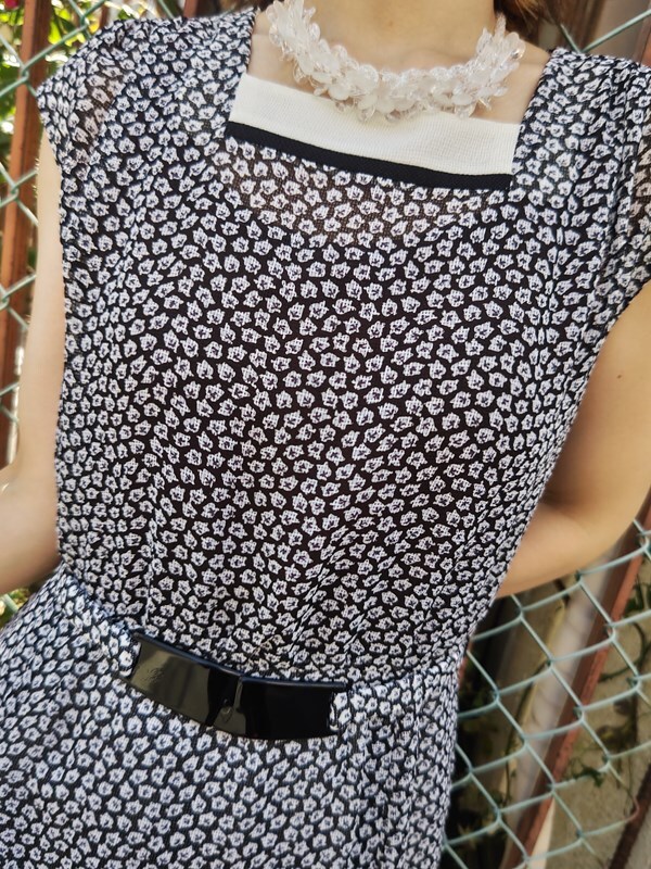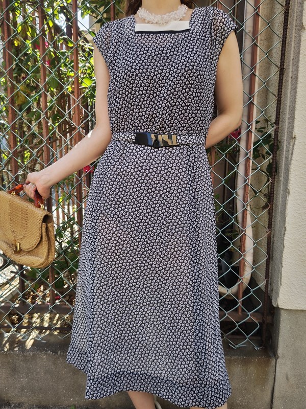 モノトーン小花柄がとっても素敵なヴィンテージワンピースです。