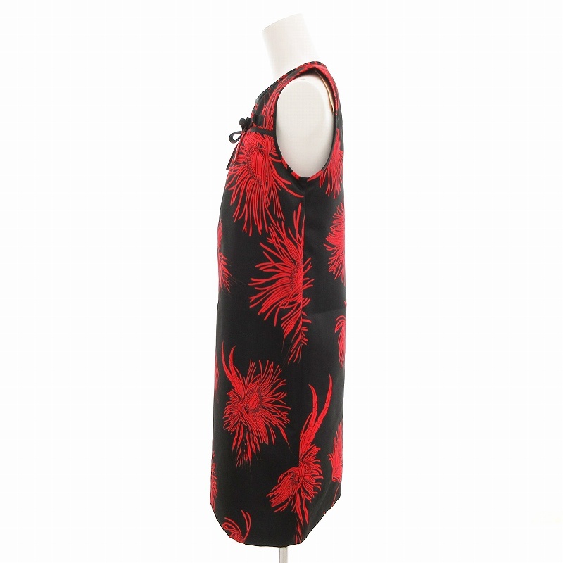 ヌメロヴェントゥーノ N°21 美品 ワンピース ノースリーブ 花柄 リボン ひざ丈 38 黒 ブラック 赤 レッド /AE ■GY41 レディース